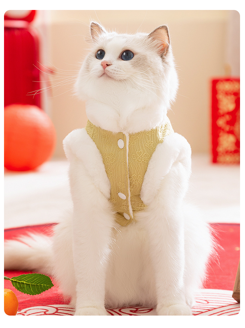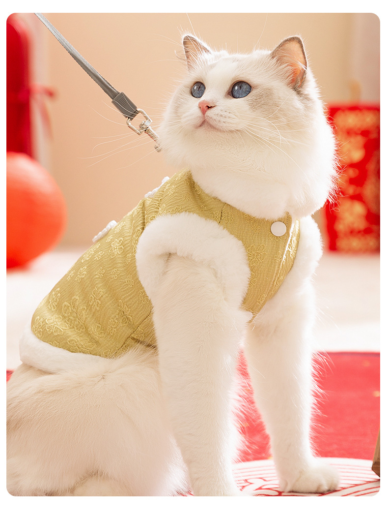 Одежда для кошек на осень и зиму, хлопковый жилет в китайском стиле на пуговицах для Нового года, костюм Тан для собак породы Тедди малых и средних размеров, одежда для домашних животных.