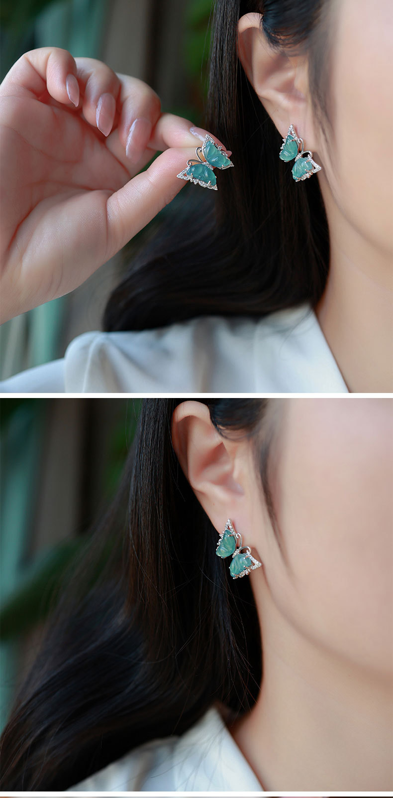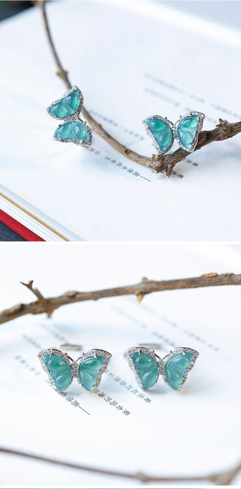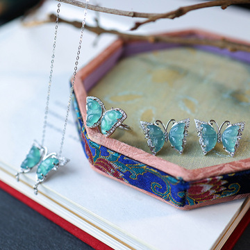 Натуральный изумруд A грузовой синий водный материал высокого уровня серьги гвоздь ожерелье украшения 925 Серебряное кольцо бабочка ювелирный набор