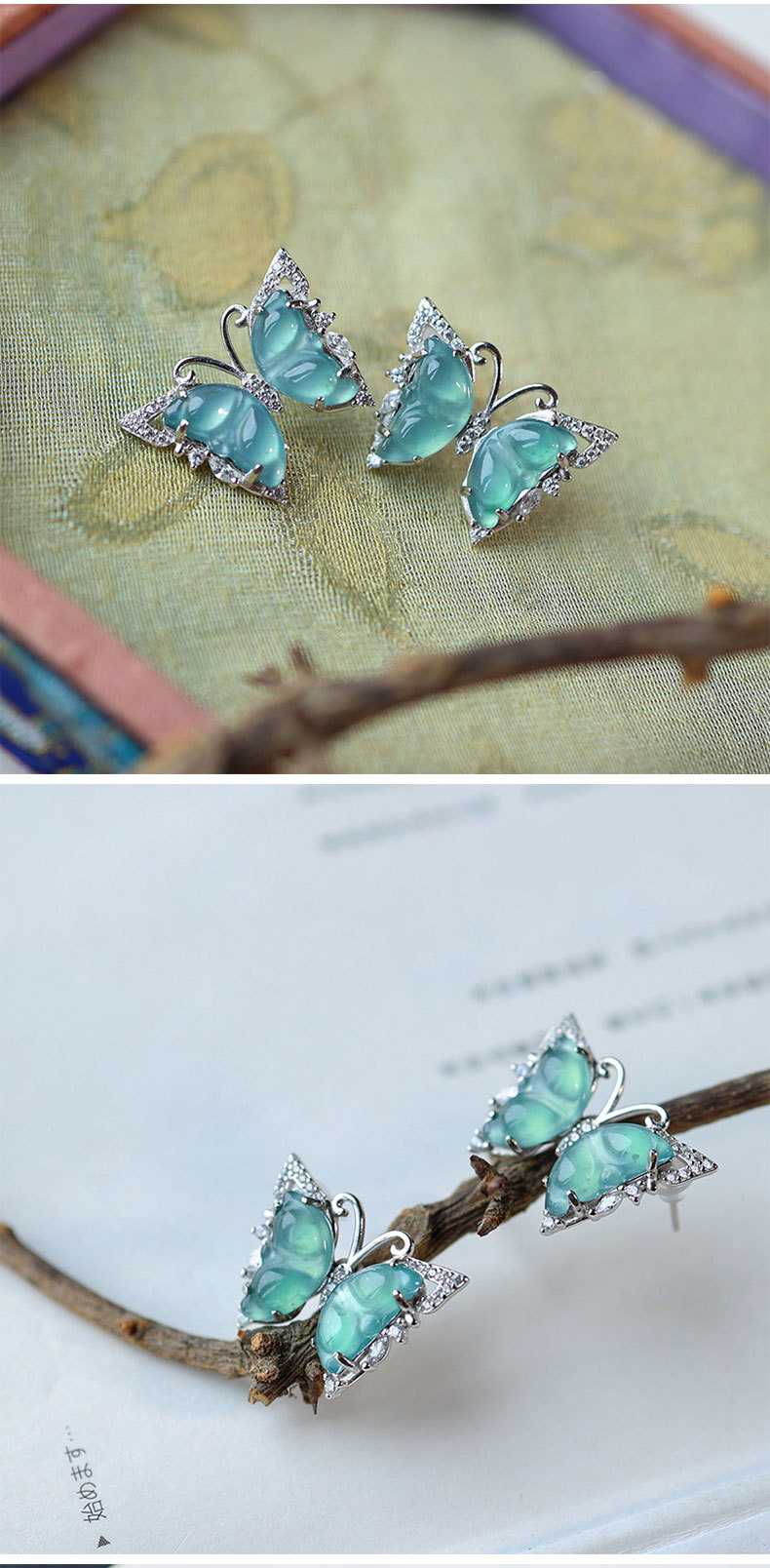 Натуральный нефритовый синий водный бабочка, серебро 925 пробы класса А