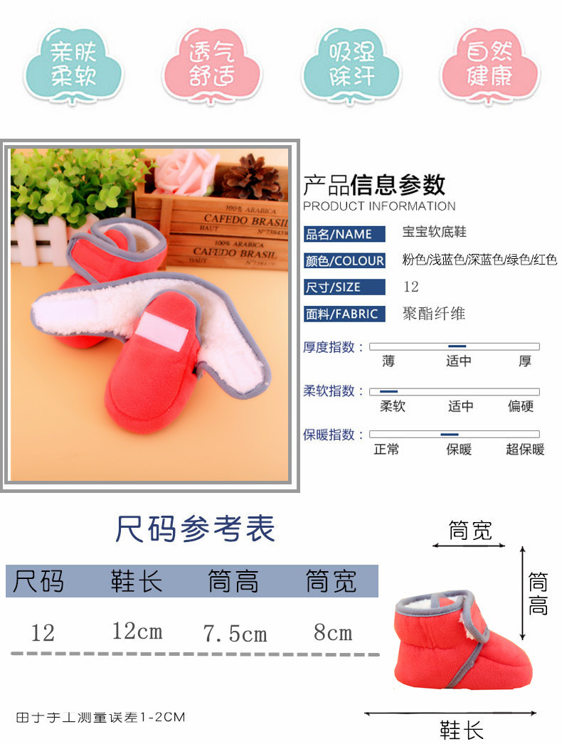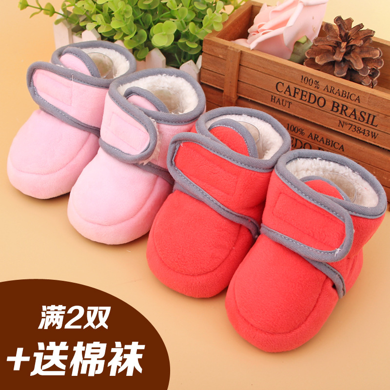 Весна и Осень Зима 0 Мужские и женские кроссовки для малышей 3 Мягкая подошва не выпадает 6 бархат утолщение 12 месяцев Детская хлопчатобумажная обувь 1 год