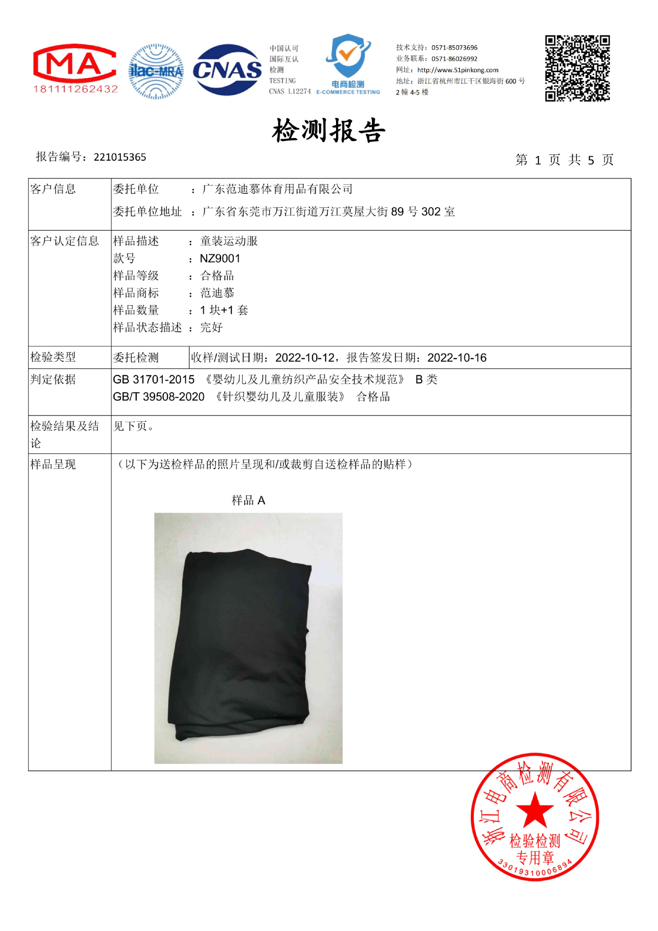 Содержание состава ткани: