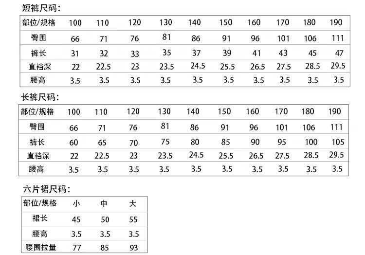 100cm; 110cm; 120cm; 130cm; 140cm; 150cm; 160cm; 170cm; L; XL