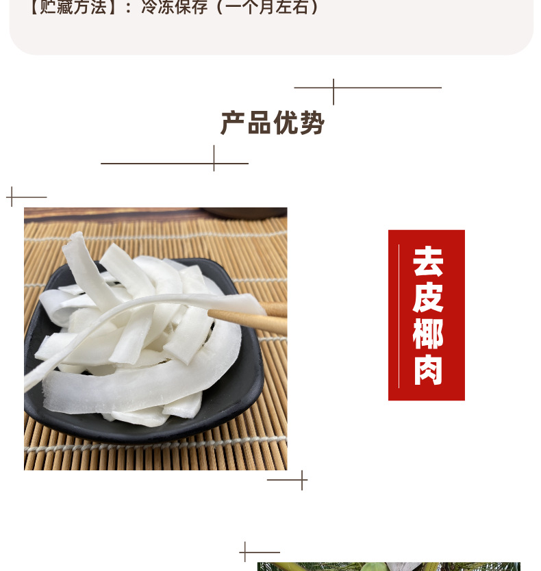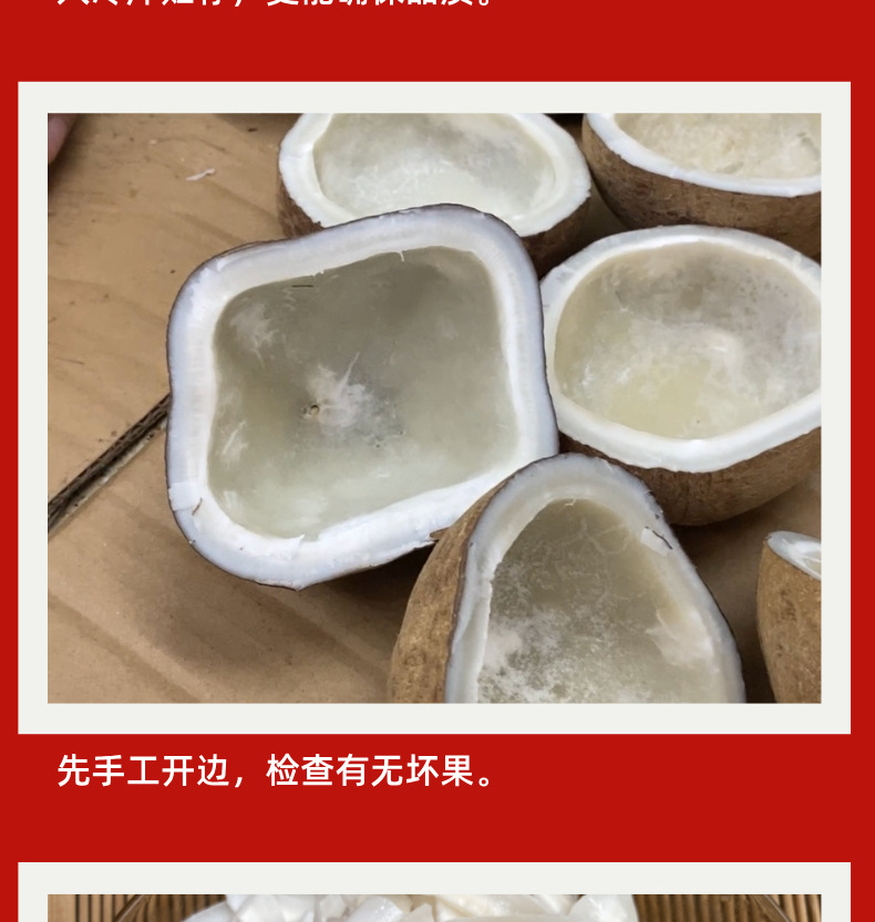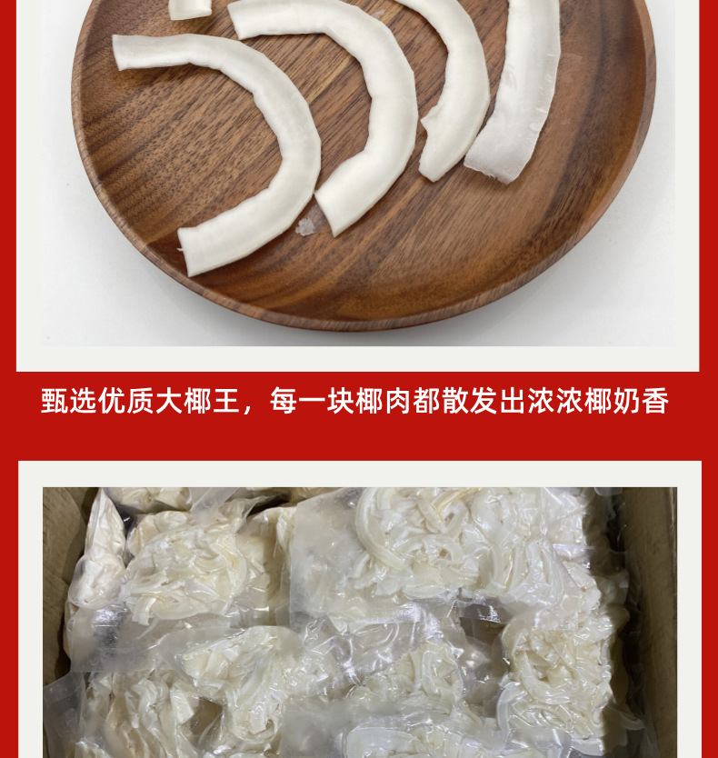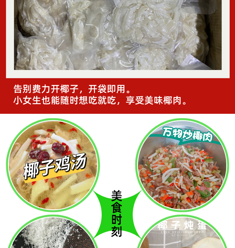 亲,椰肉虽然进行了真空打包,收到货后也需要放入冰箱冷藏,以保证口味口感,煲汤使用前要清洗椰肉。椰肉煲不烂,越嚼越香!