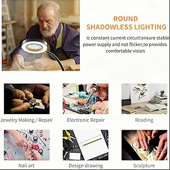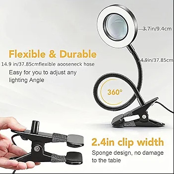 Универсальная лампа-лупа с 5-кратным увеличением для косметологии, татуажа, наращивания ресниц, маникюра, с гибким металлическим кольцевым светильником