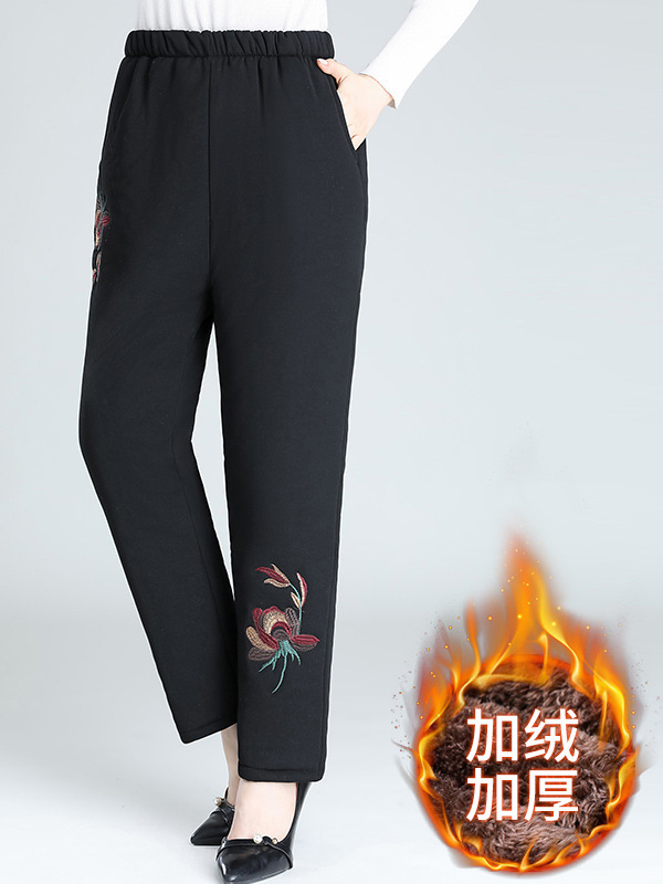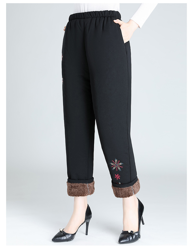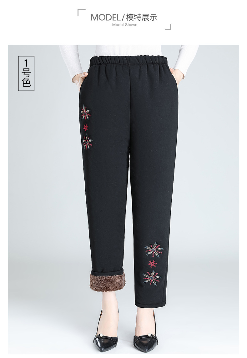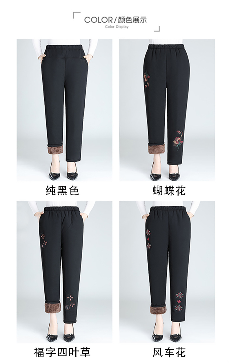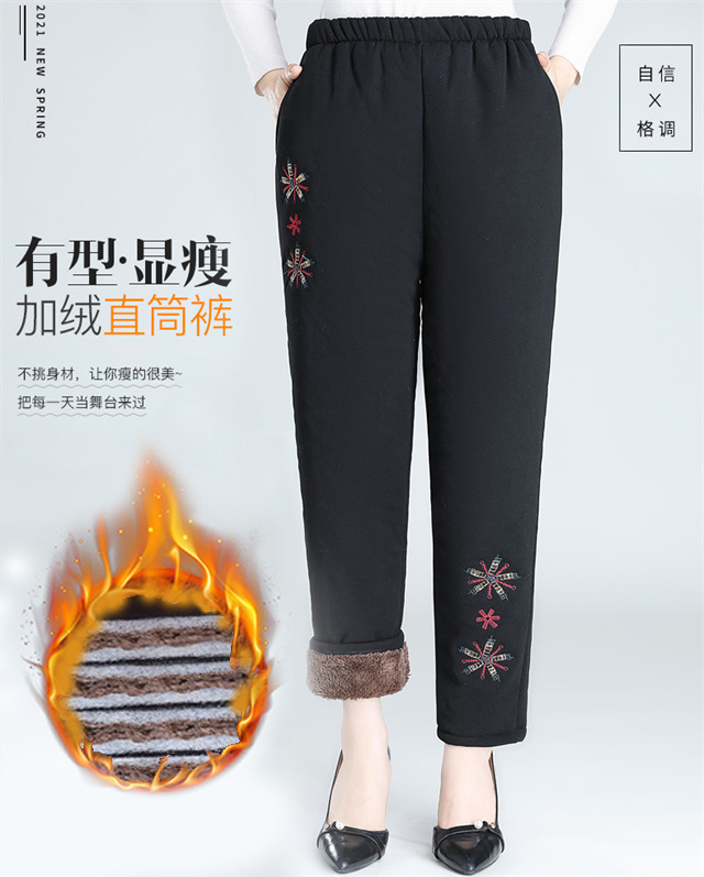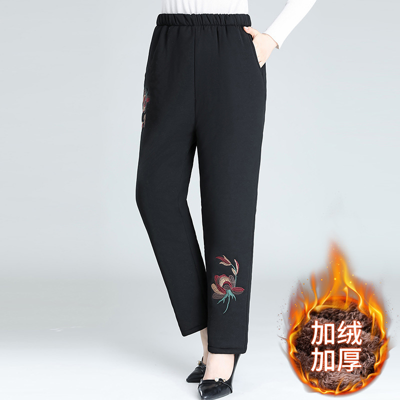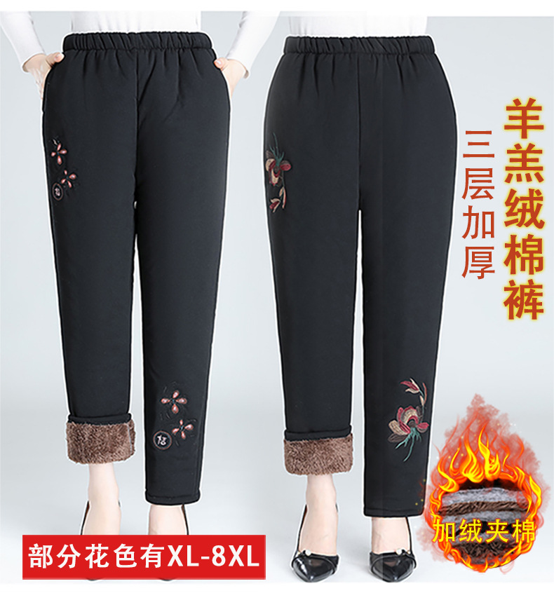 Средний и пожилой бархат толстые кашемировые брюки бабушки теплые вышитые хлопчатобумажные брюки мама зимние трехслойные хлопчатобумажные брюки