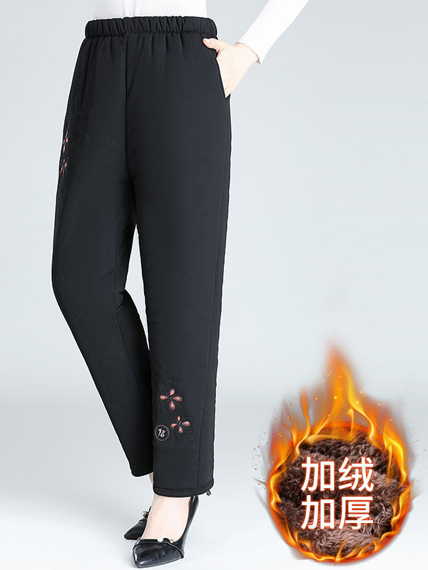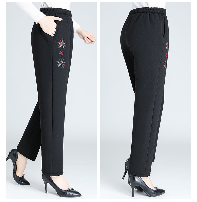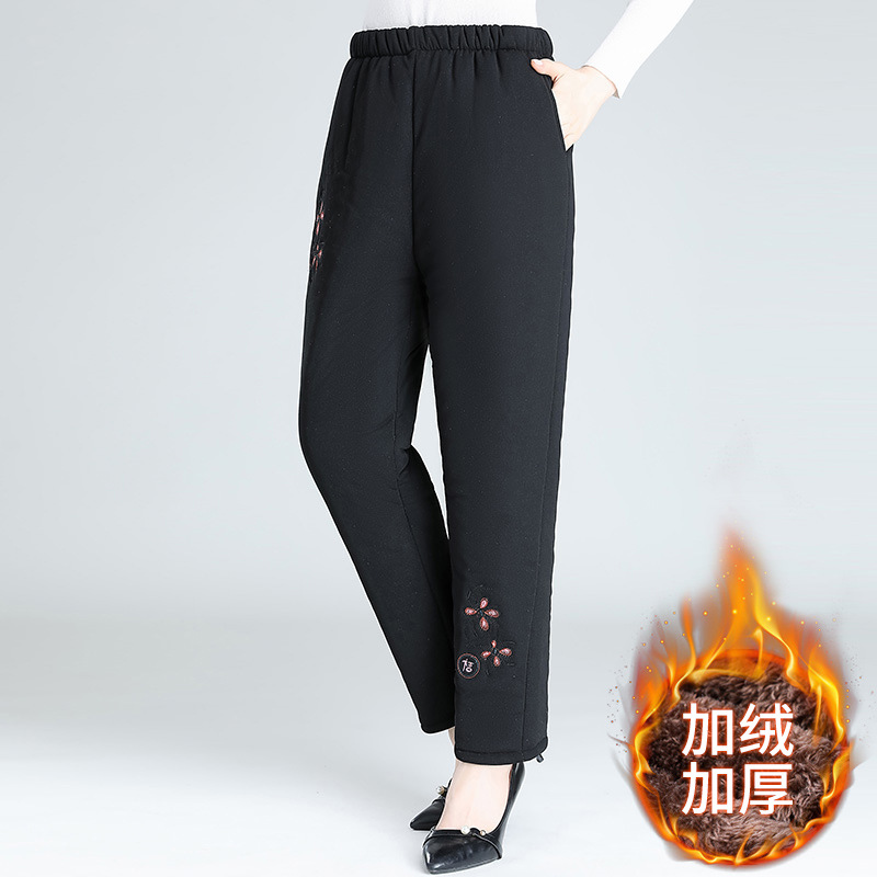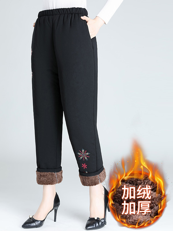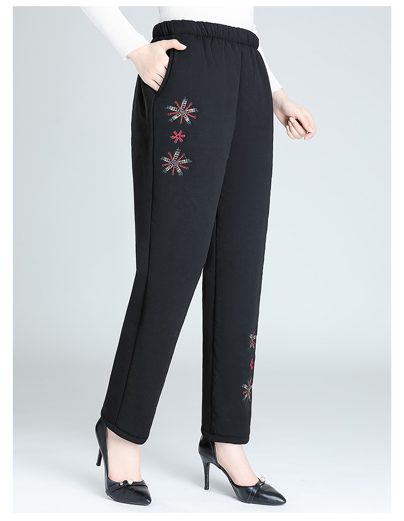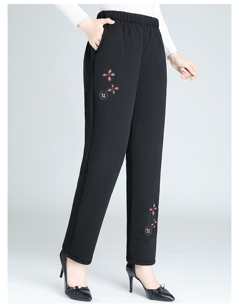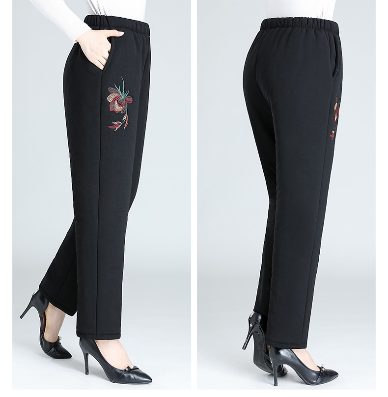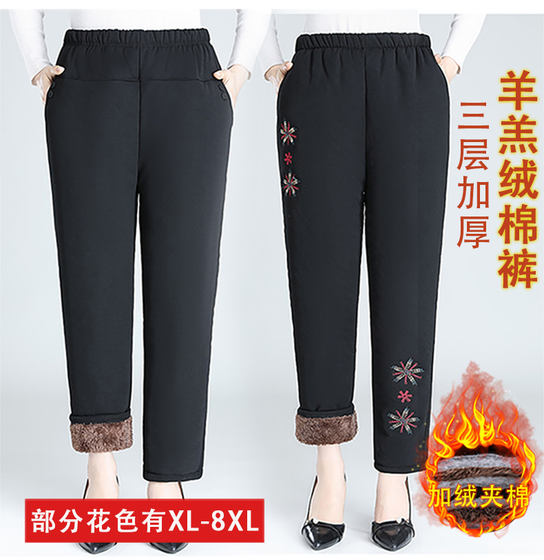 Средний и пожилой бархат толстые кашемировые брюки бабушки теплые вышитые хлопчатобумажные брюки мама зимние трехслойные хлопчатобумажные брюки