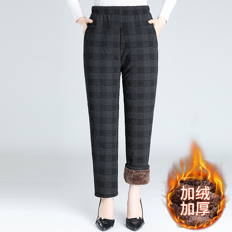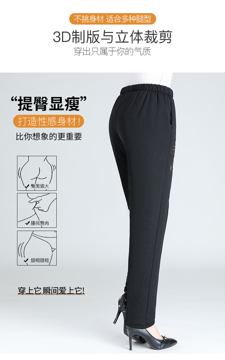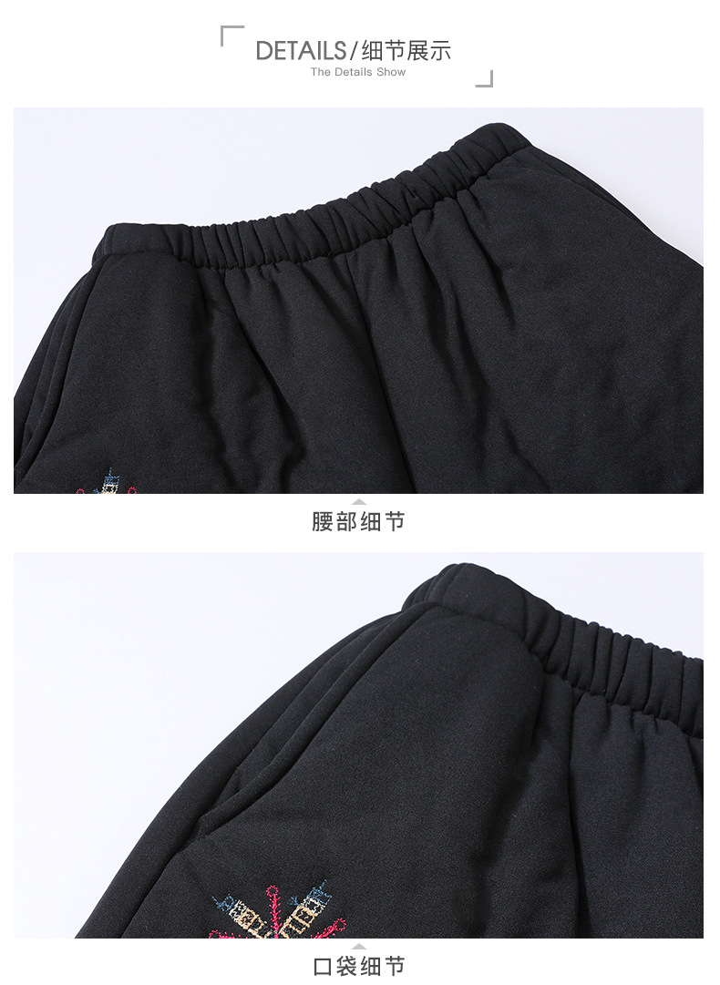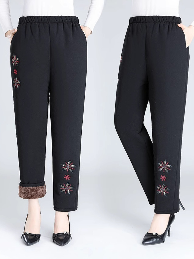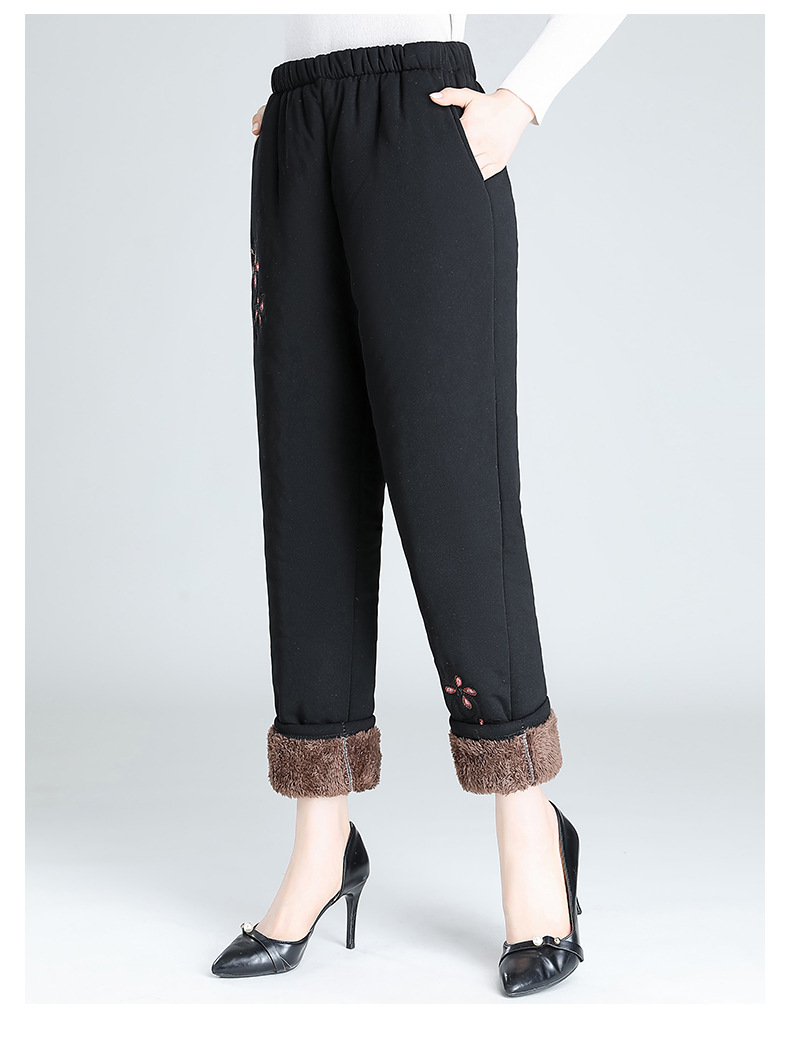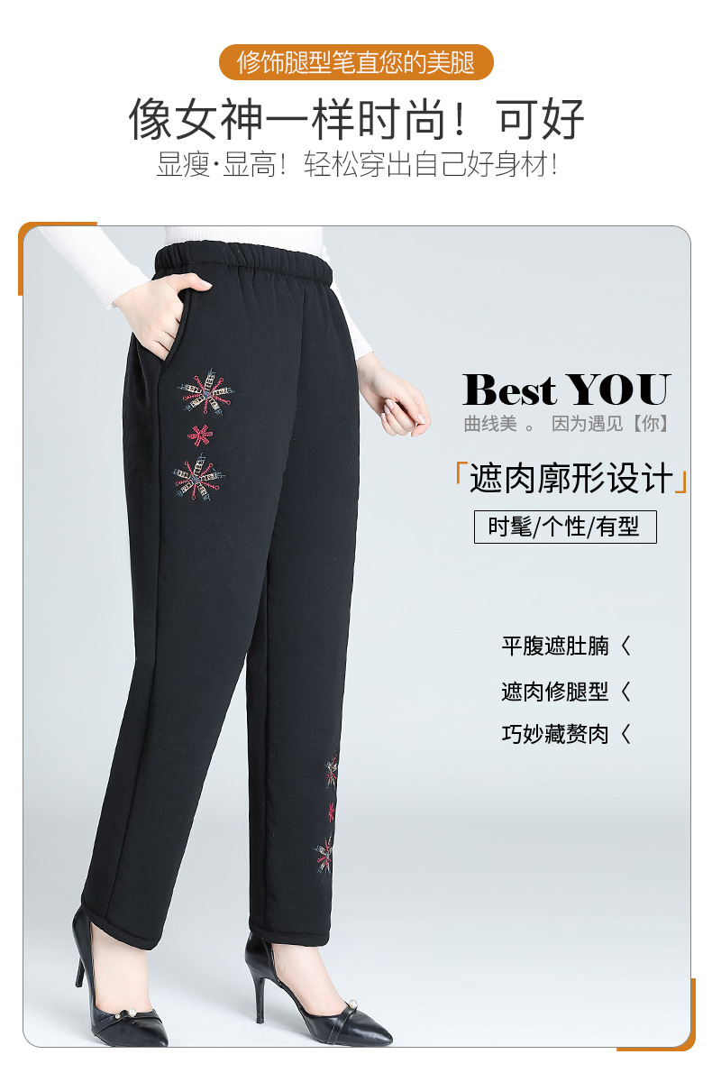 Средний и пожилой бархат толстые кашемировые брюки бабушки теплые вышитые хлопчатобумажные брюки мама зимние трехслойные хлопчатобумажные брюки