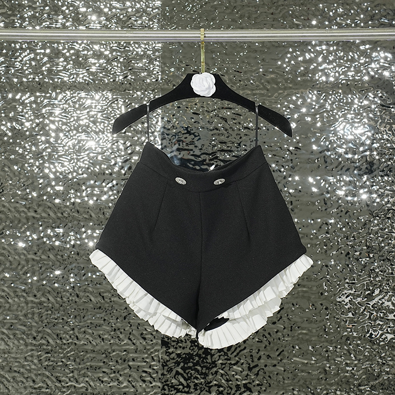 Xiao Xiangfeng модные персонализированные шорты складки женские весенние новые темпераментные цвета сшивания дизайн ощущение повседневные широкие брюки