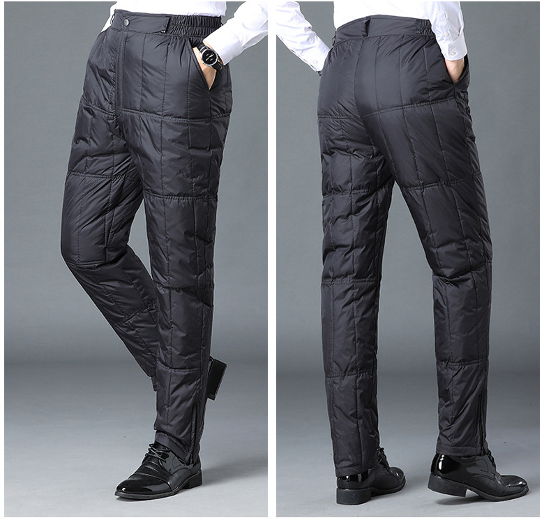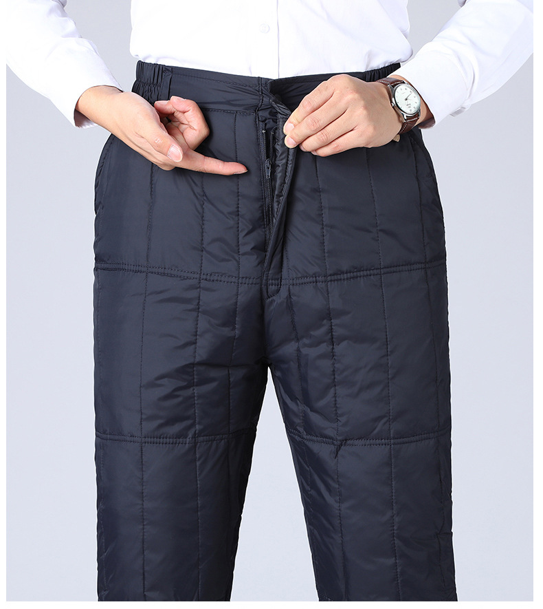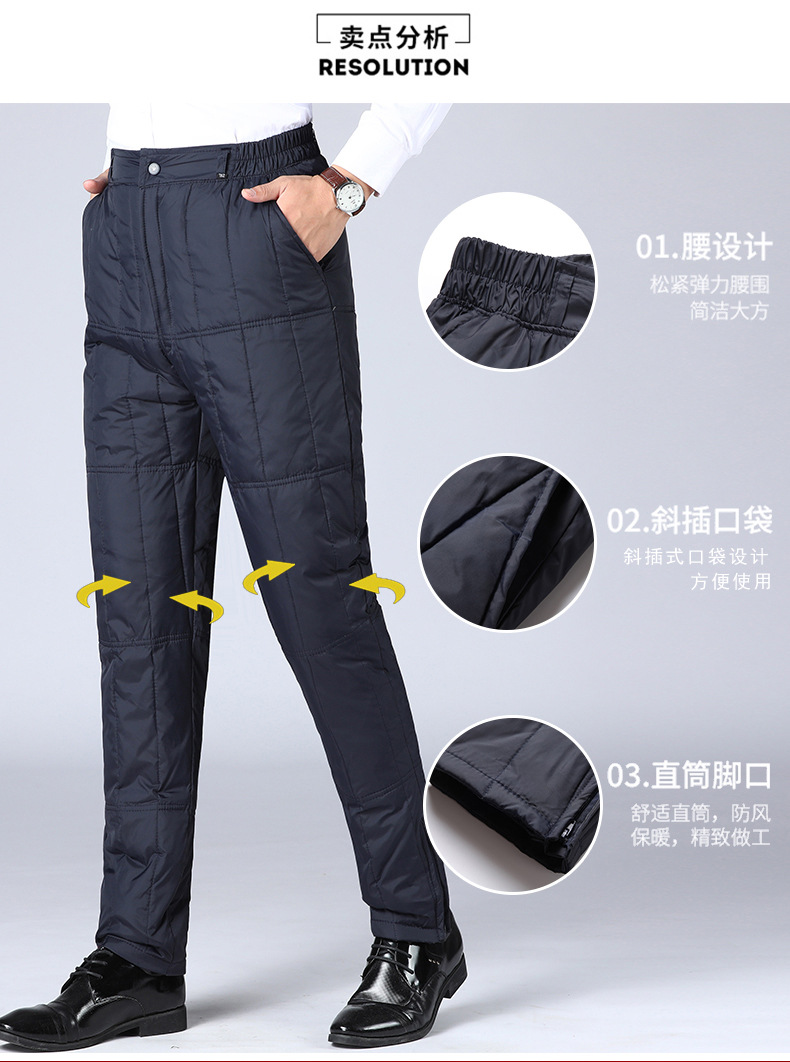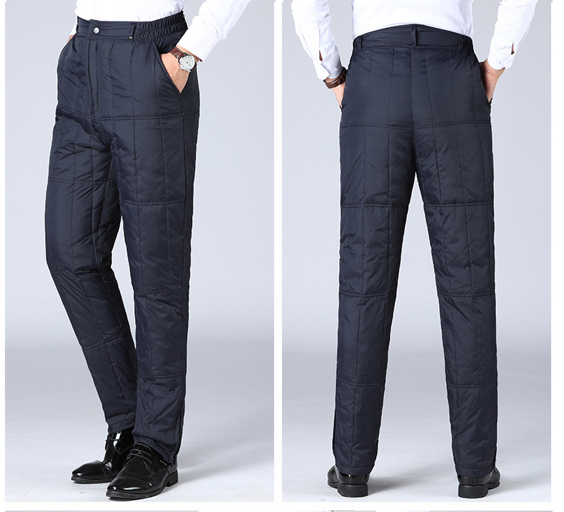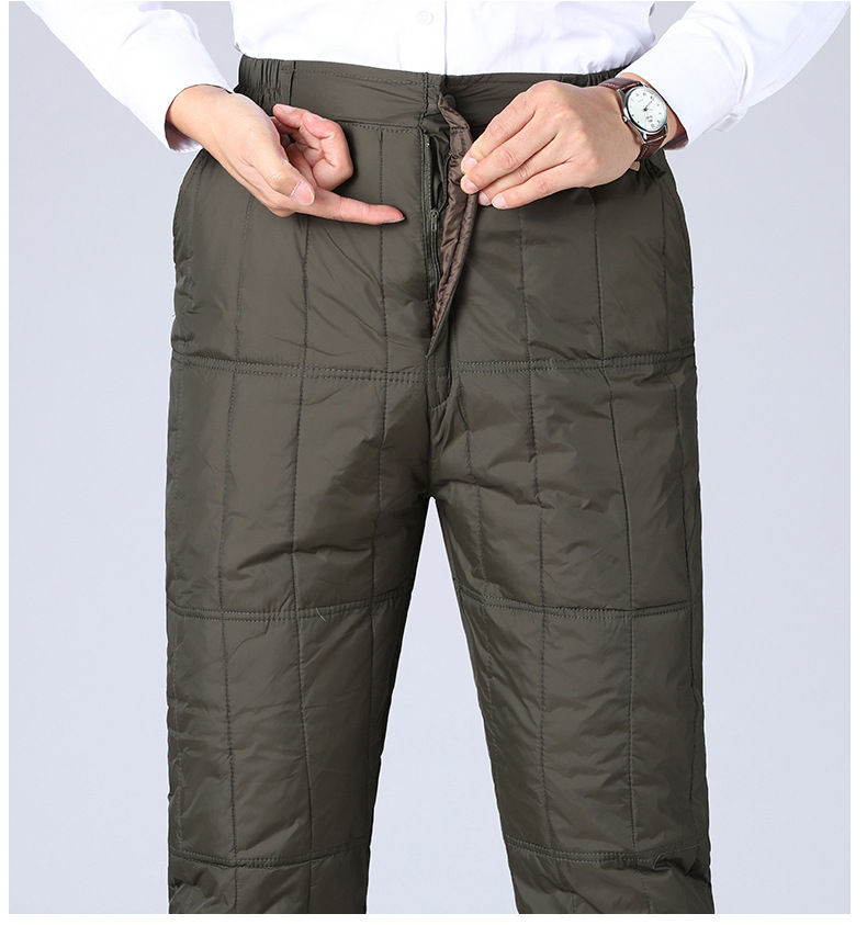 Зимние новые пуховые брюки среднего и пожилого возраста мужчины носят высокие талии внутри и снаружи