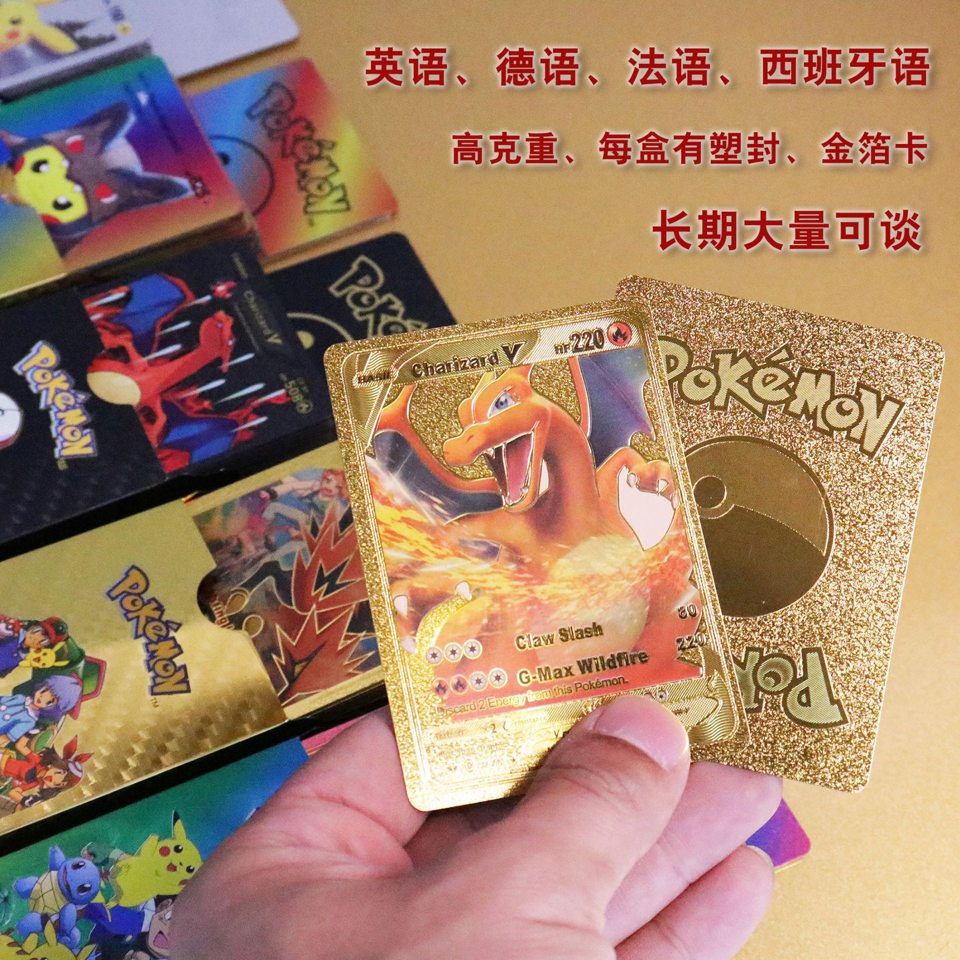 Pokemon 55 карт из золотой фольги ПВХ Коллекционные карты Pokémon настольные игры