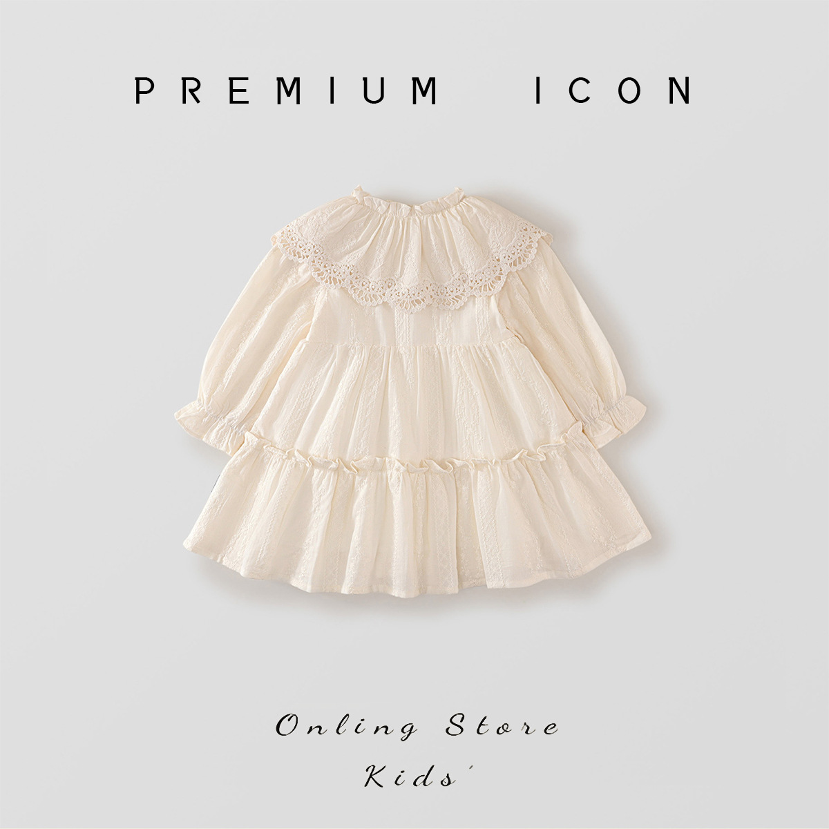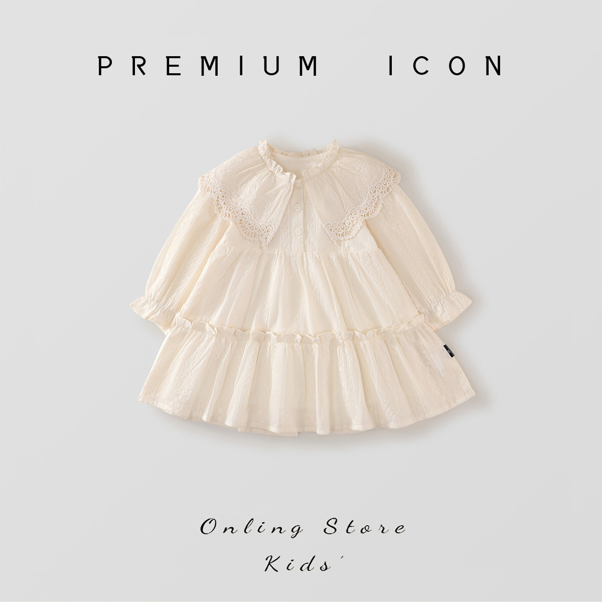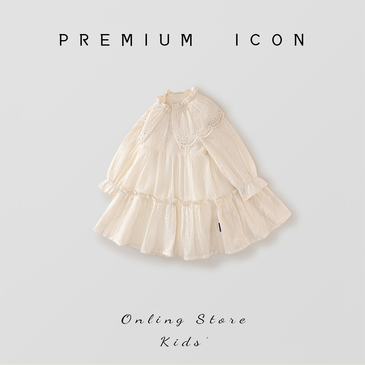 Французское кружевное платье для девочек 2025 осень новый детский большой отворот с длинным рукавом платье принцессы через границу