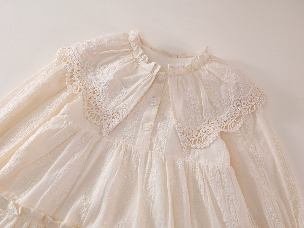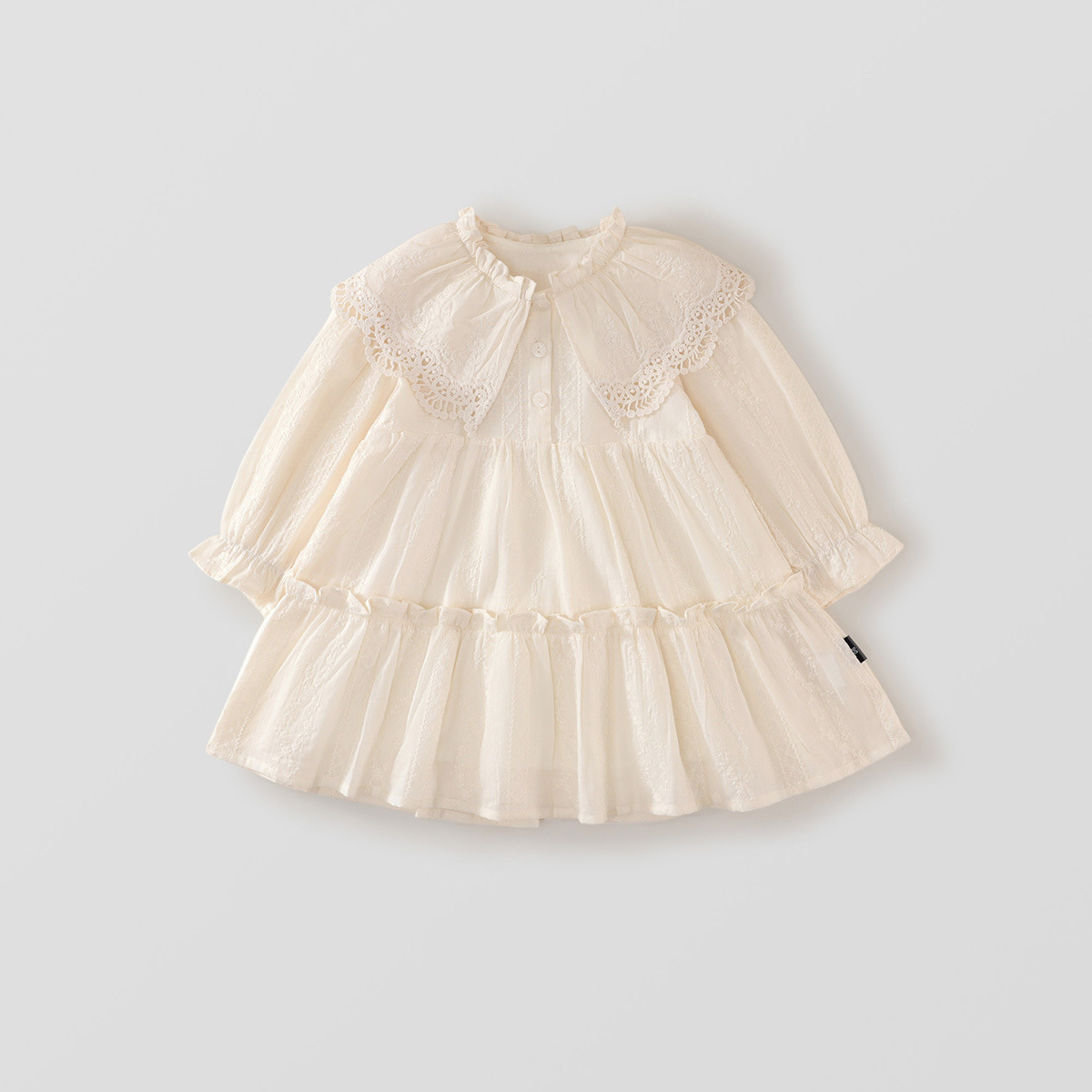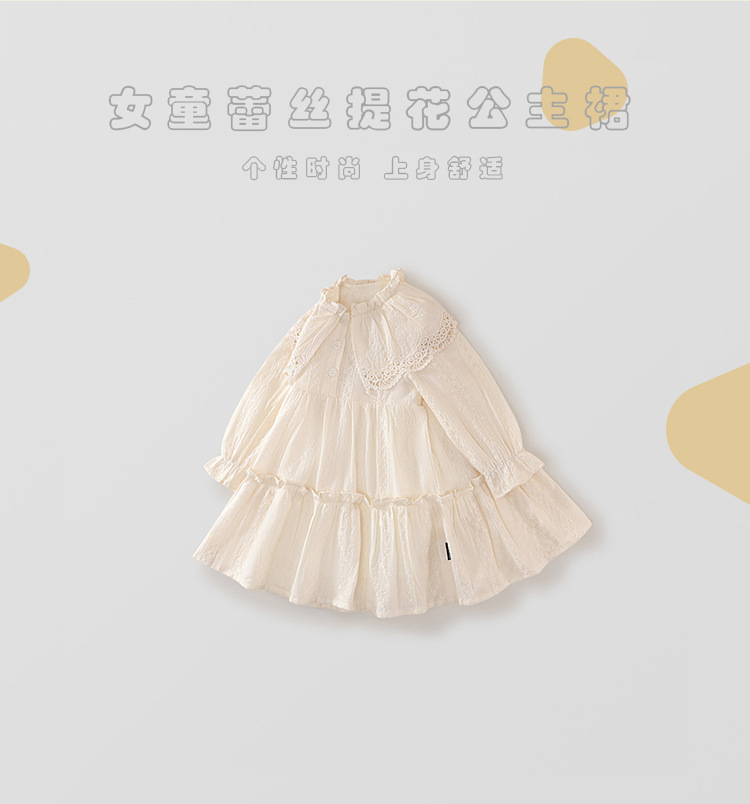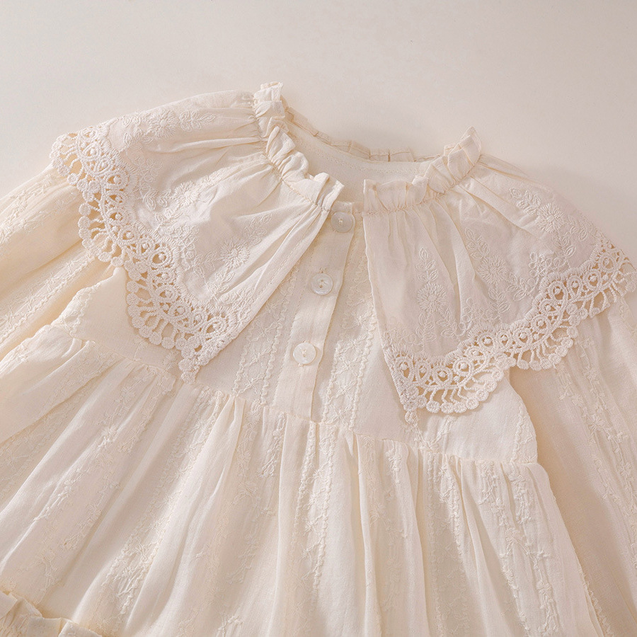 Французское кружевное платье для девочек 2025 осень новый детский большой отворот с длинным рукавом платье принцессы через границу