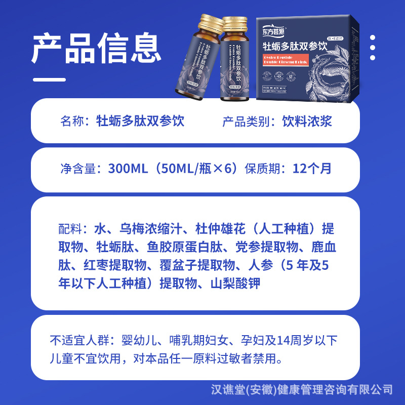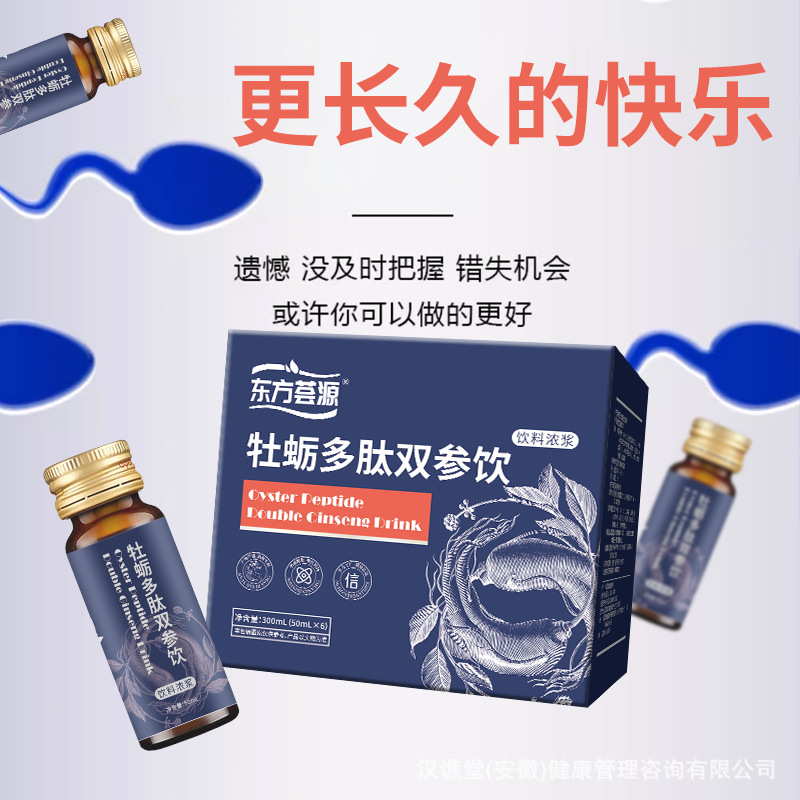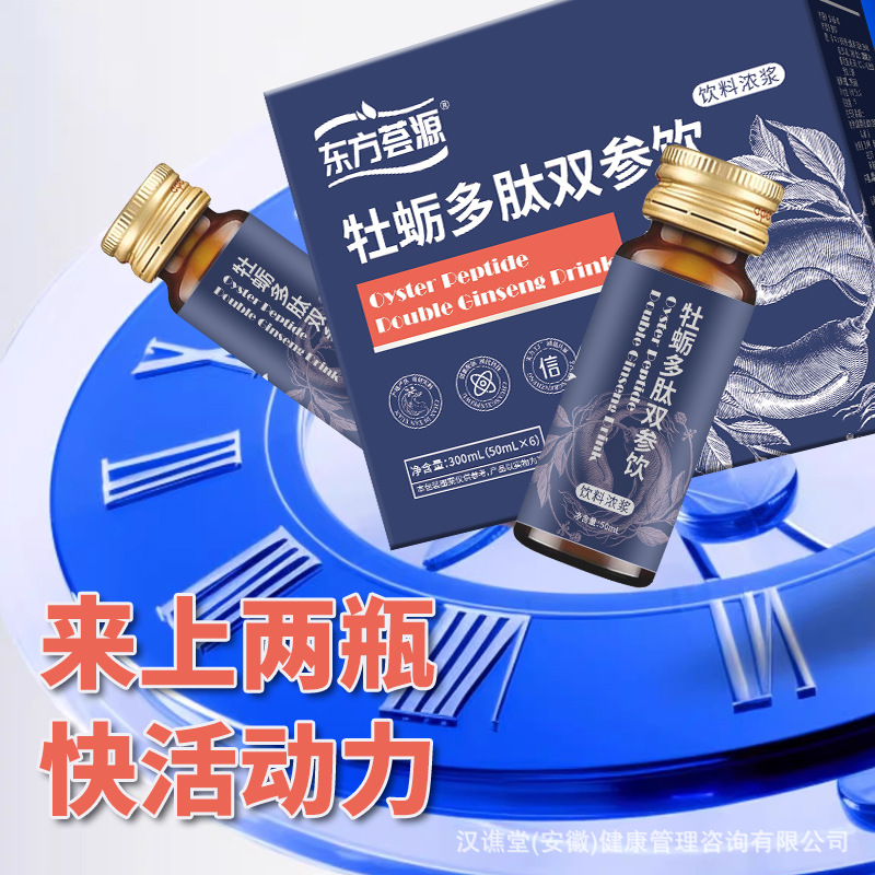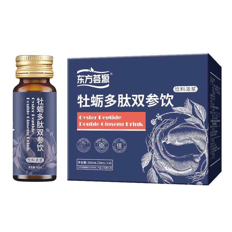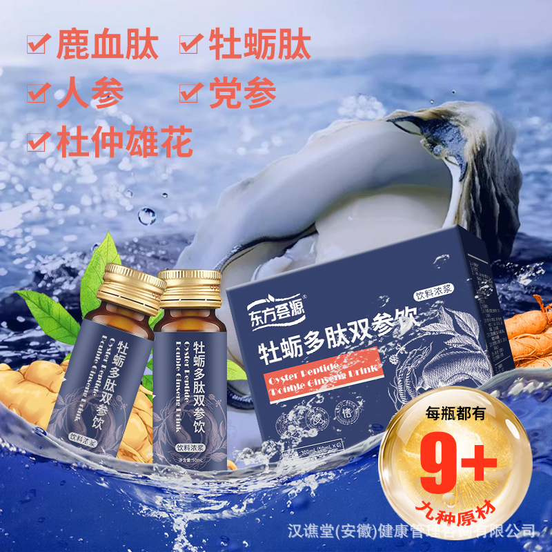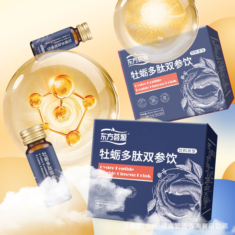 Напиток Oriental Huayuan Oyster Peptide Double Ginseng — популярный бутилированный травяной напиток для мужчин с кодонопсисом и женьшенем.