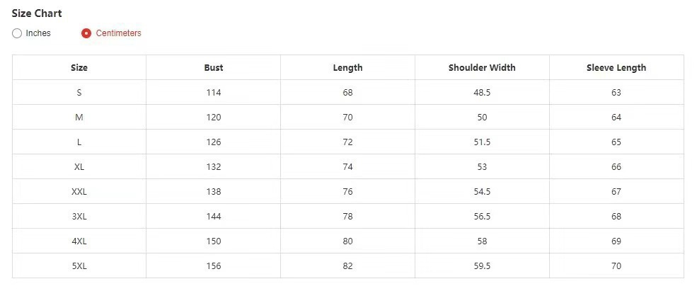 S; M; L; XL; XXL; XXXL; XXXXL; 5XL