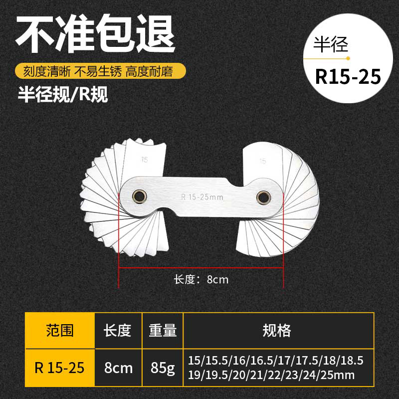 R-калибровка из нержавеющей стали радиус/модельный R-датчик/радиан 0,3-1,5 R1-7 R7.5-15 R15.5-25