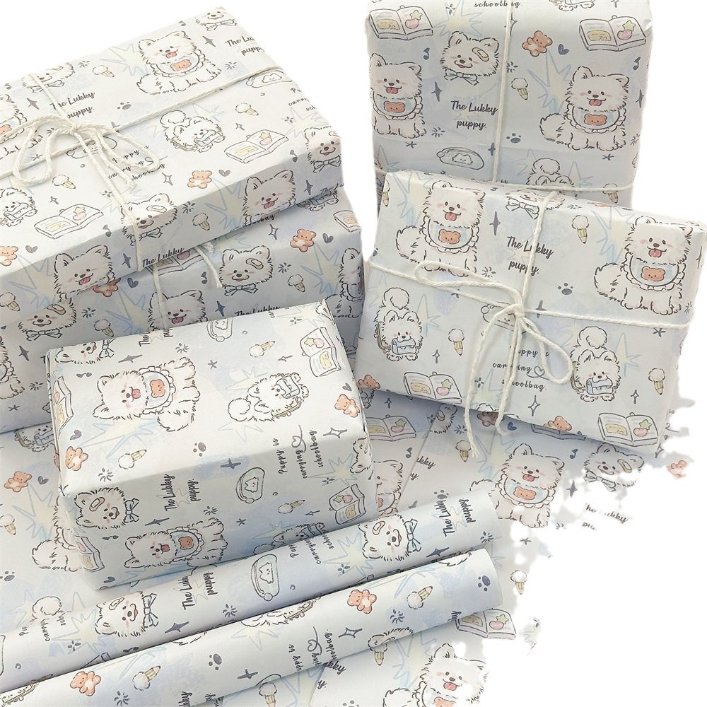 Упаковочная бумага Love Sanrio; Бумага для упаковки самойских собак; Бумага для упаковки щенок с синим граффити; Желтая упаковочная бумага для щенков с граффити; Бумага для упаковки граффити Кт; Зеленая и белая бумага для каллиграфии в древнем стиле; Бумага для упаковки каллиграфии в древнем стиле мертвого листа; Бумага для упаковки щенков Line; 1 рулон соответствующей пеньковой веревки; Соответствующий двусторонний скотч 1 шт.