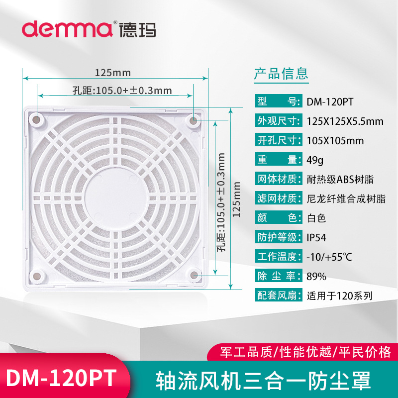 Защитный сетчатый фильтр Demar 3-в-1 для осевого вентилятора, пылезащитный, для промышленного использования, подходит для отверстий с расстоянием между ними 72 мм
