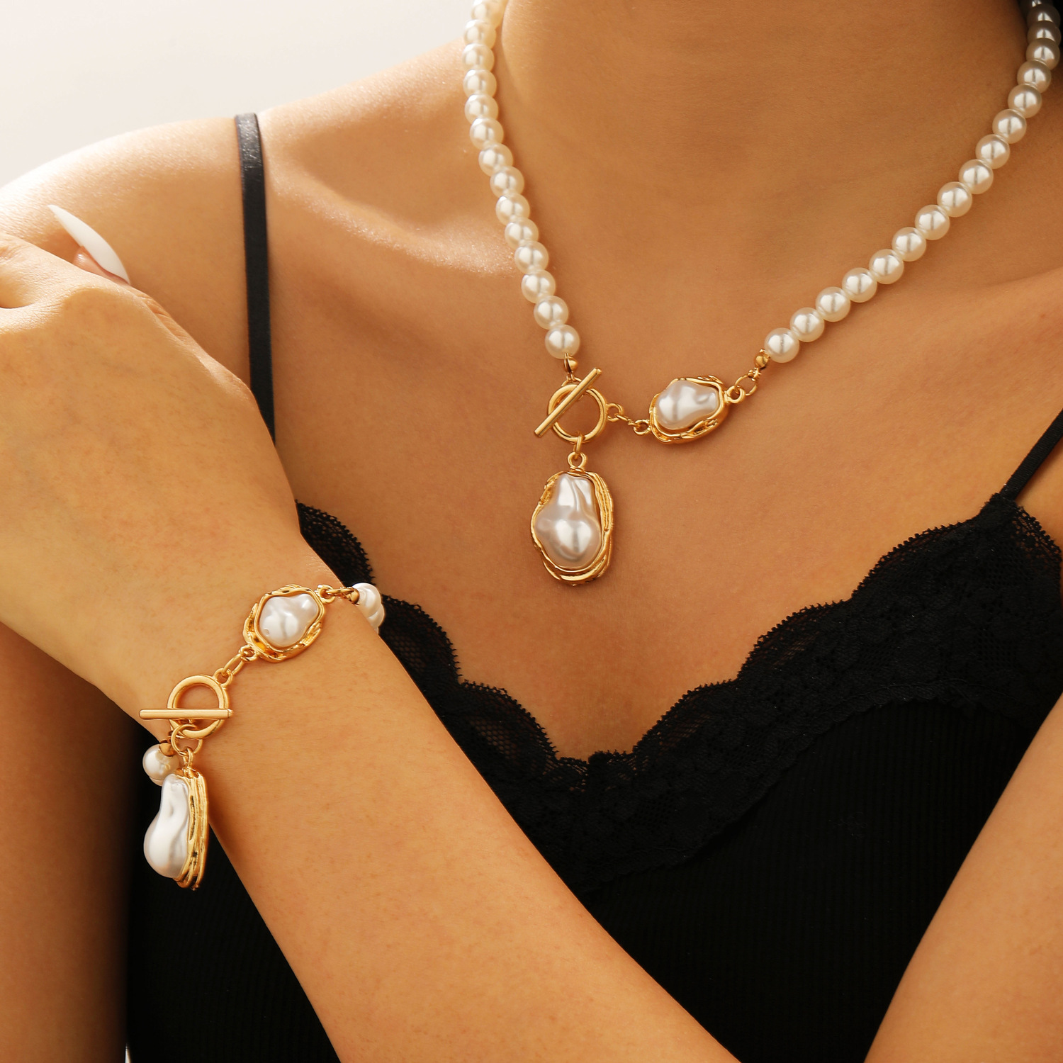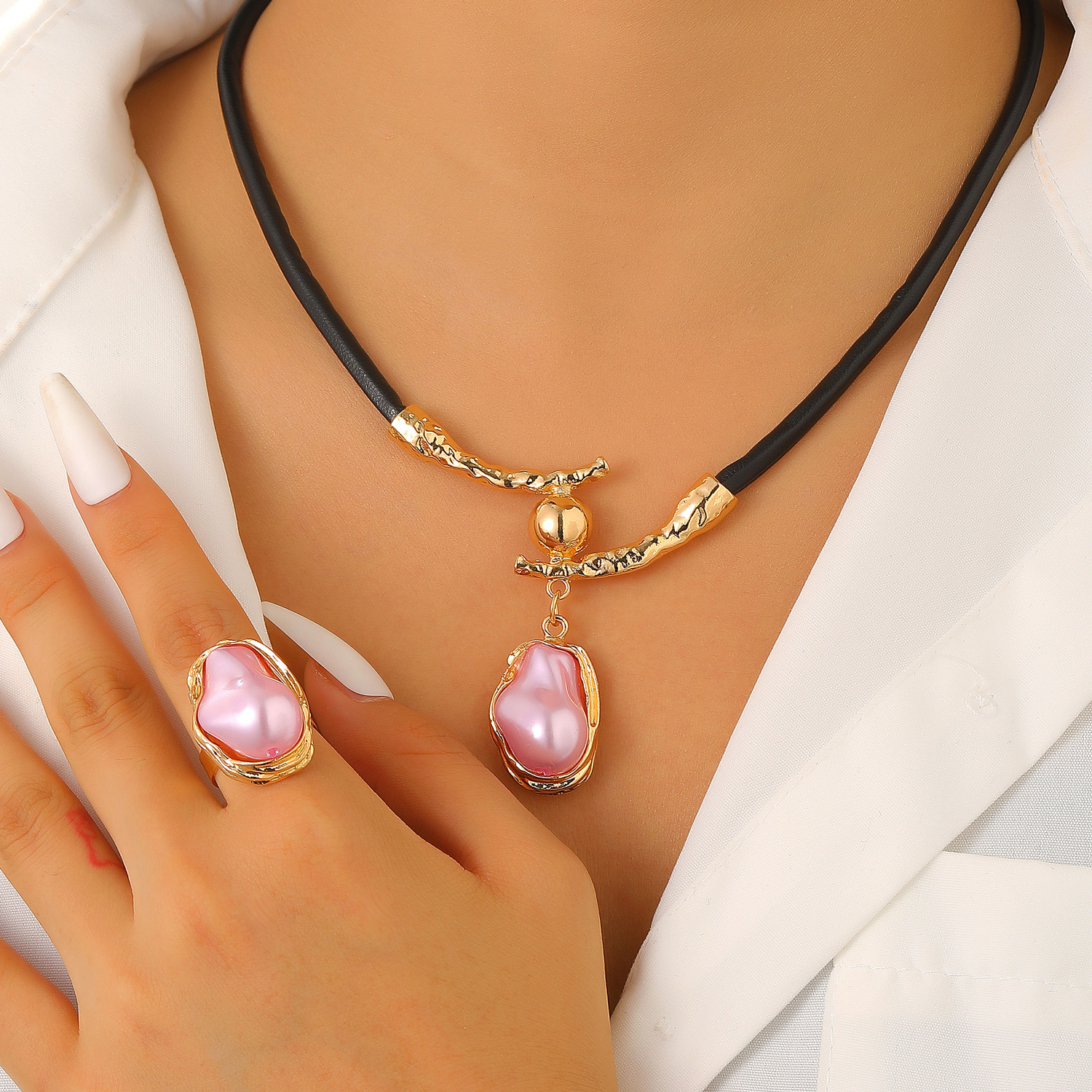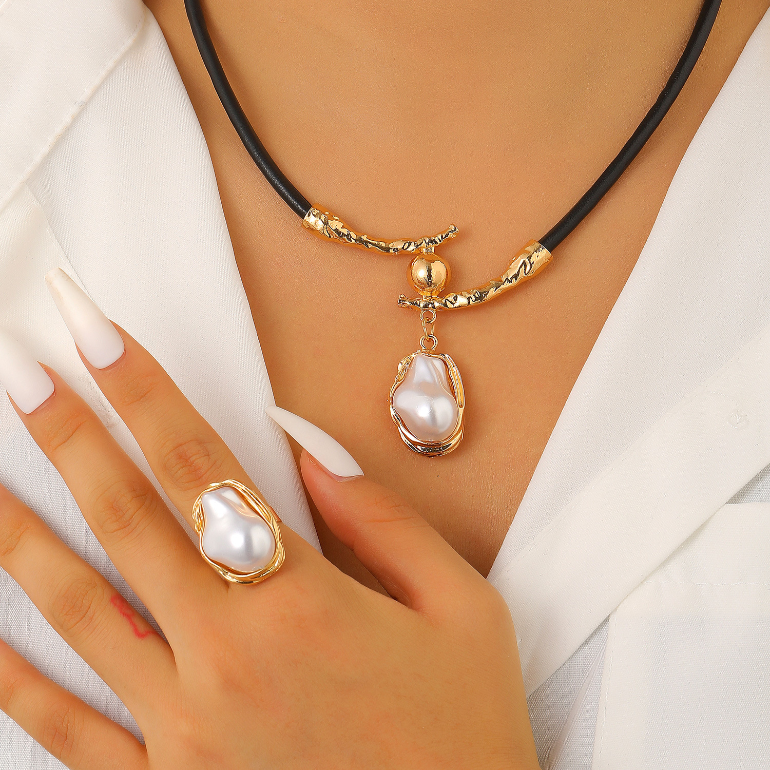 Европейские и американские трансграничные ветры посторонние барочные жемчужные ошейники choker пригородной ветер минималистичный металлический открытый украшение
