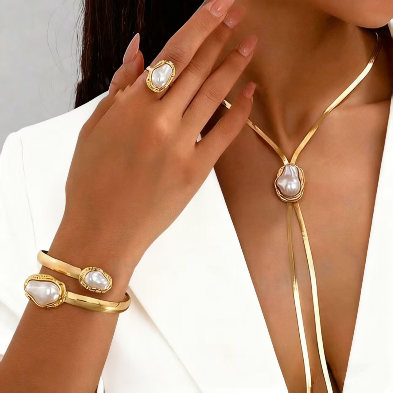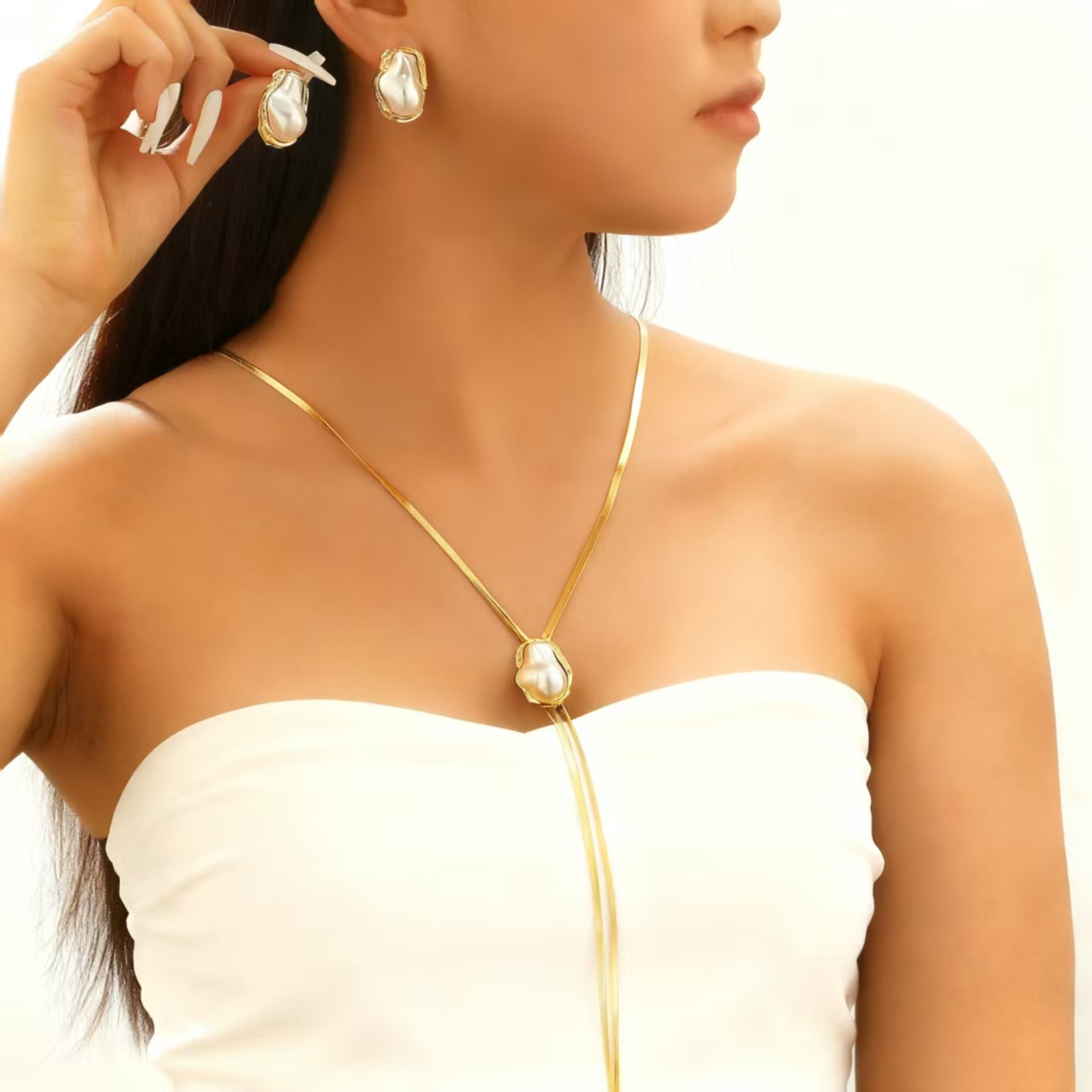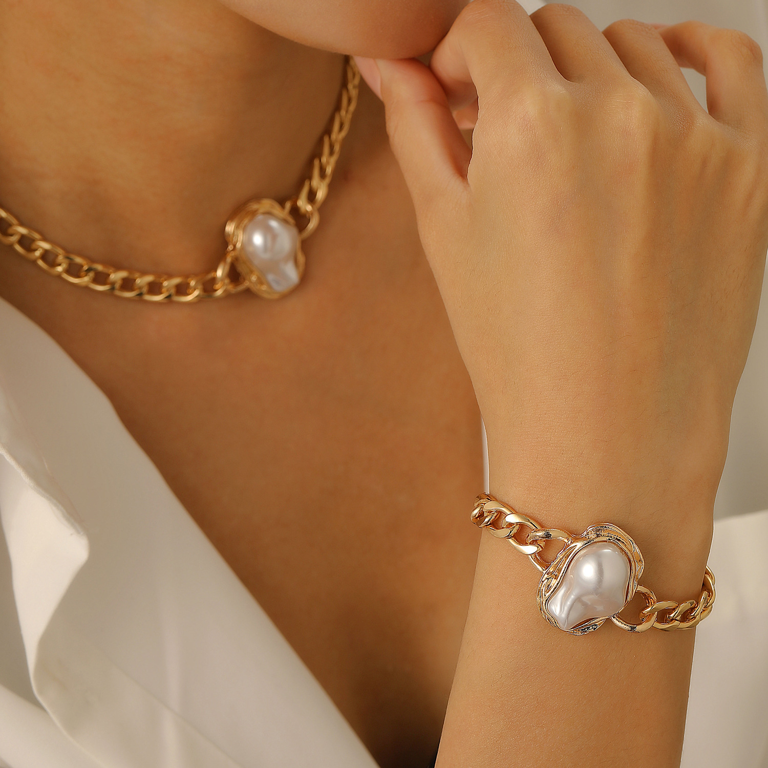 Европейские и американские трансграничные ветры посторонние барочные жемчужные ошейники choker пригородной ветер минималистичный металлический открытый украшение
