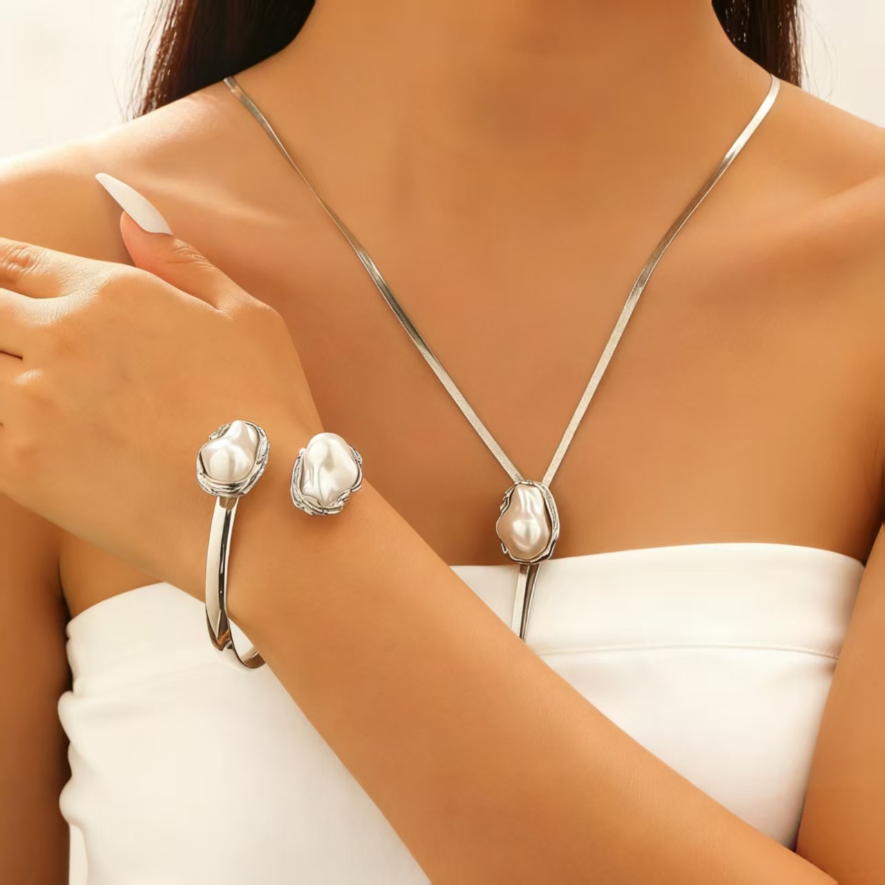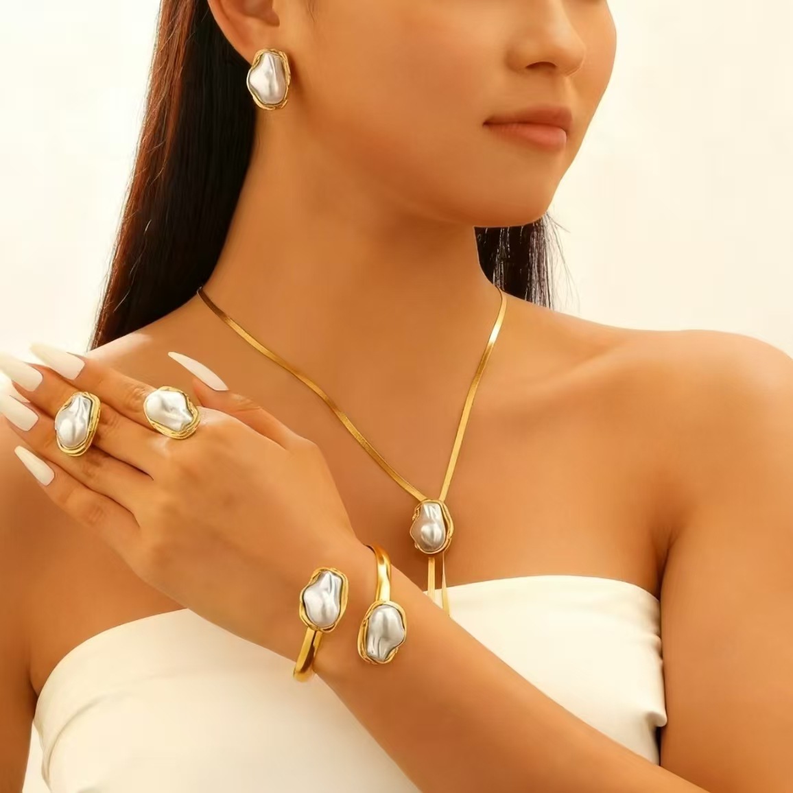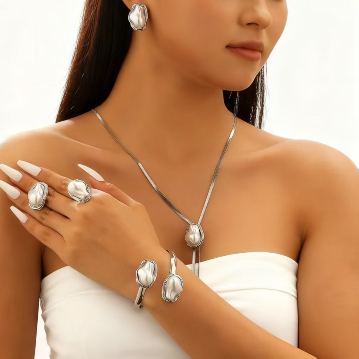 Серьги + колье + аксессуары для рук