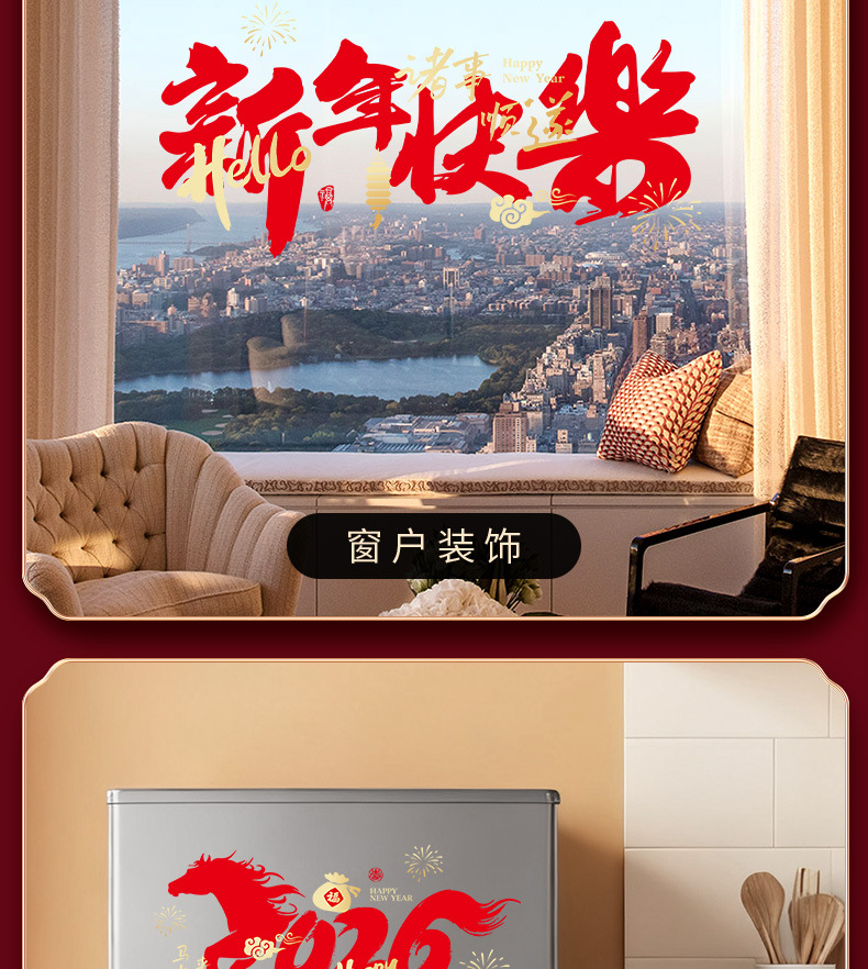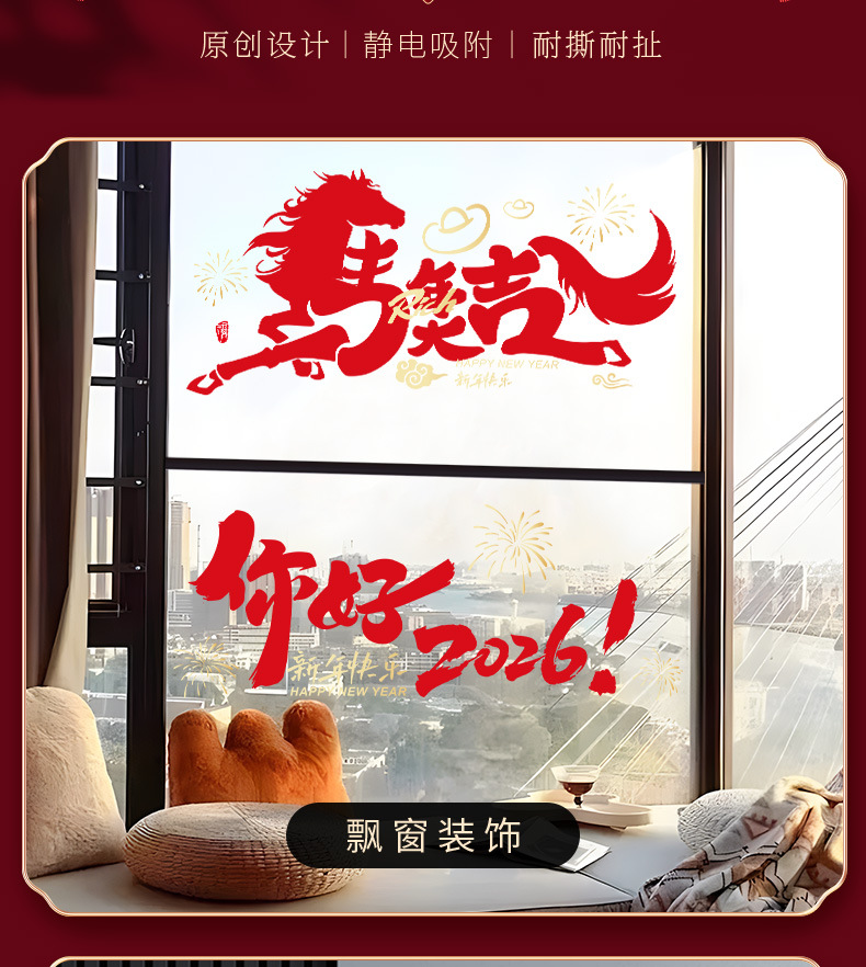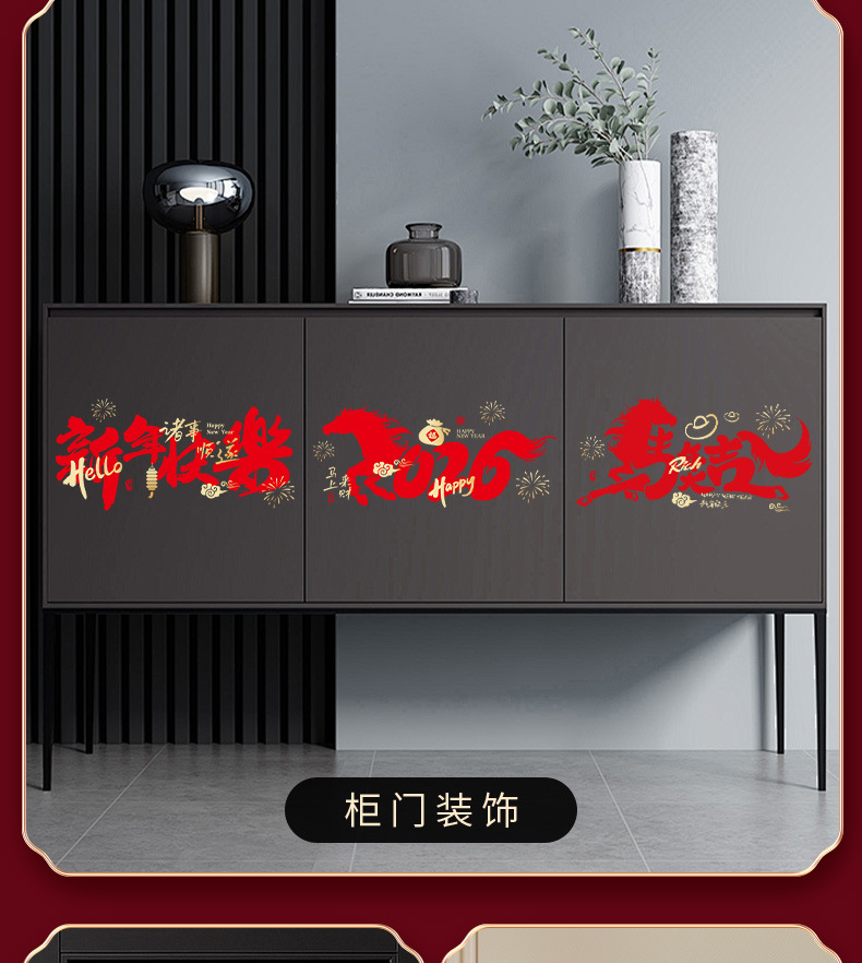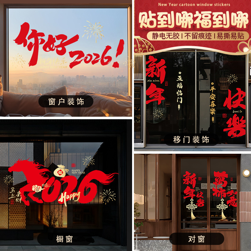 Новогодние статичные наклейки на год Лошади 2026 года, декор для окон гостиной на Весенний фестиваль, атмосферные сценические украшения, наклейки на стекло