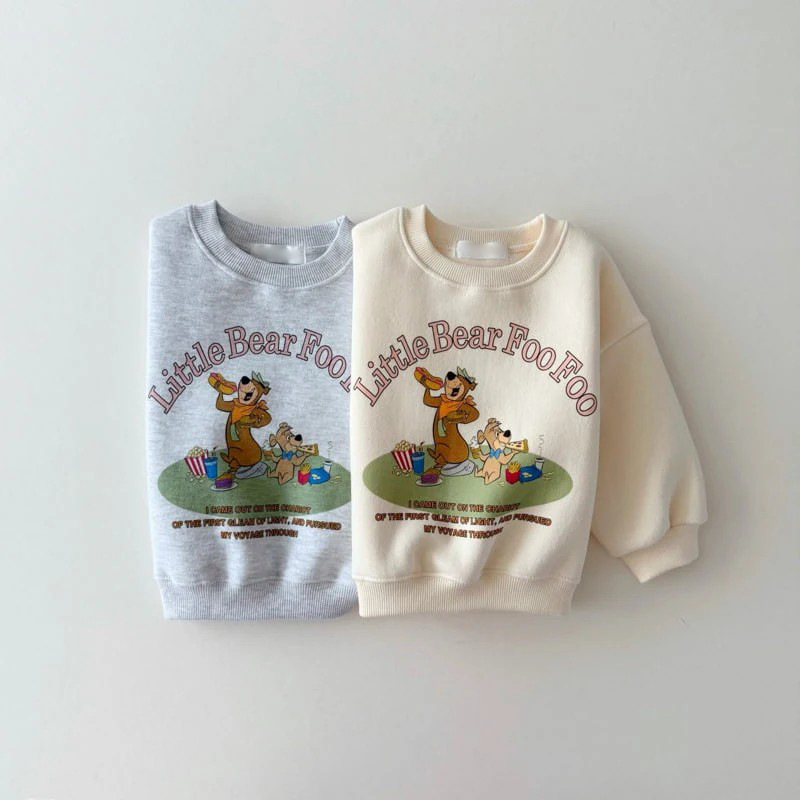 Yogi Bear Корейская версия хлопчатобумажная мультяшная детская свитер весна и осень милый круглый воротник детский топ оптом