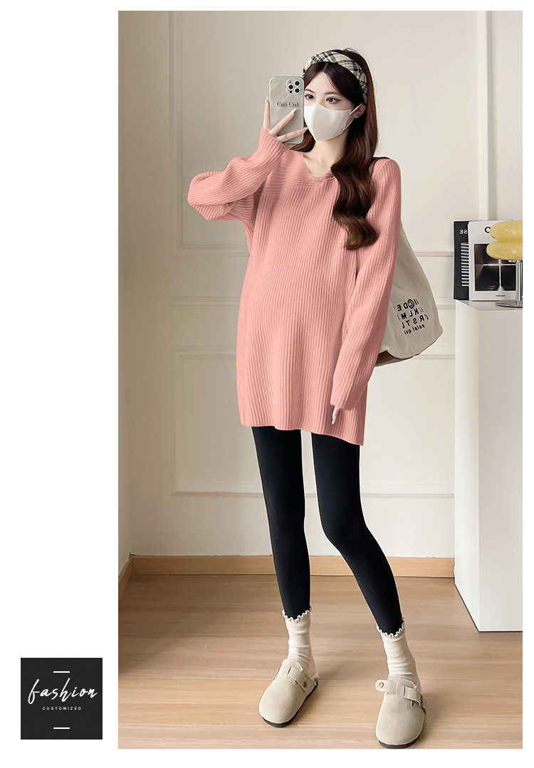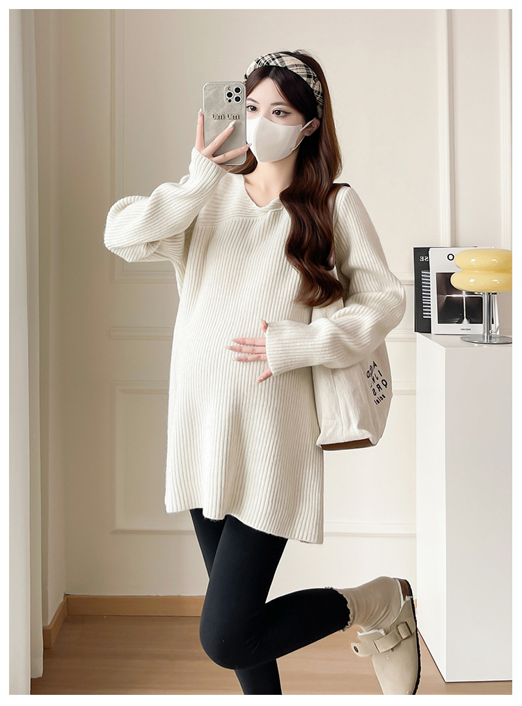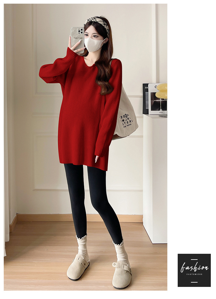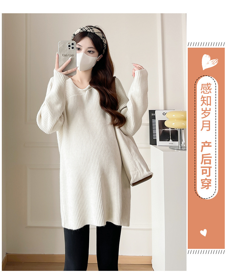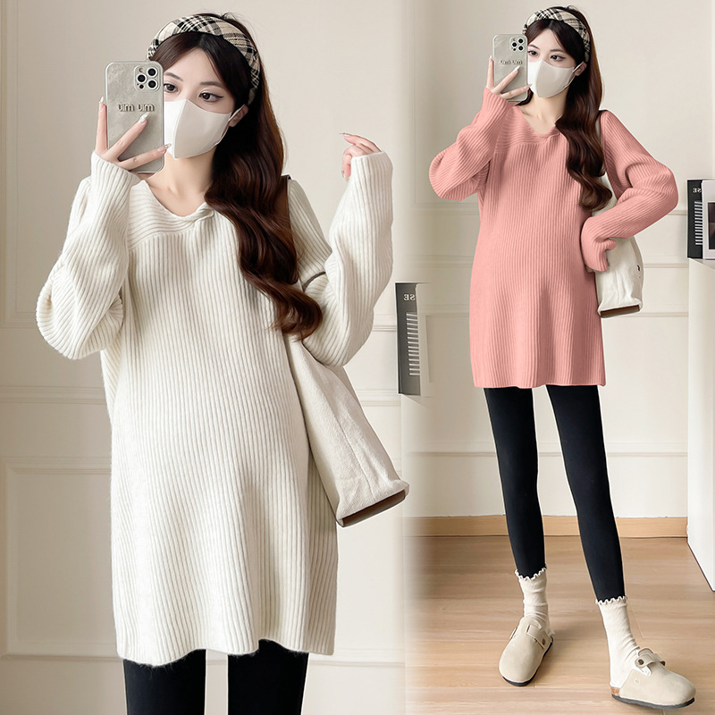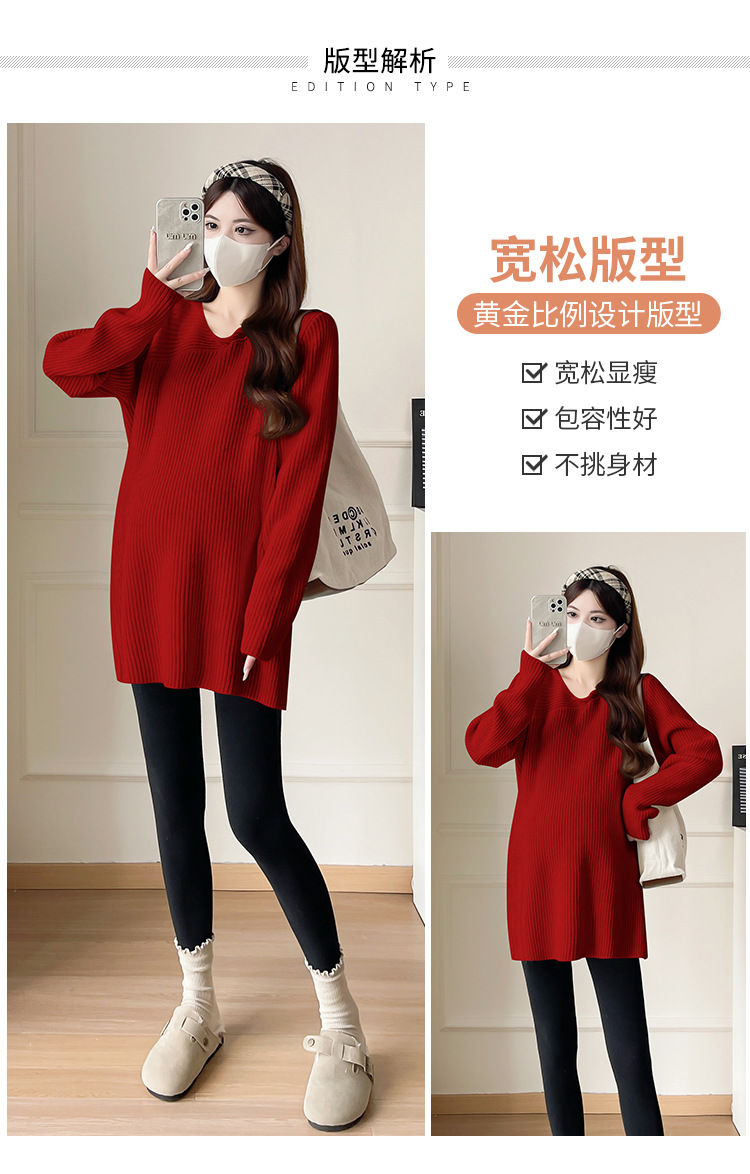 Реальный выстрел беременной женщины мягкий клейкий свитер осень-зима новый дикий свободный свитер средней и длинной одежды для беременных кормящих топ