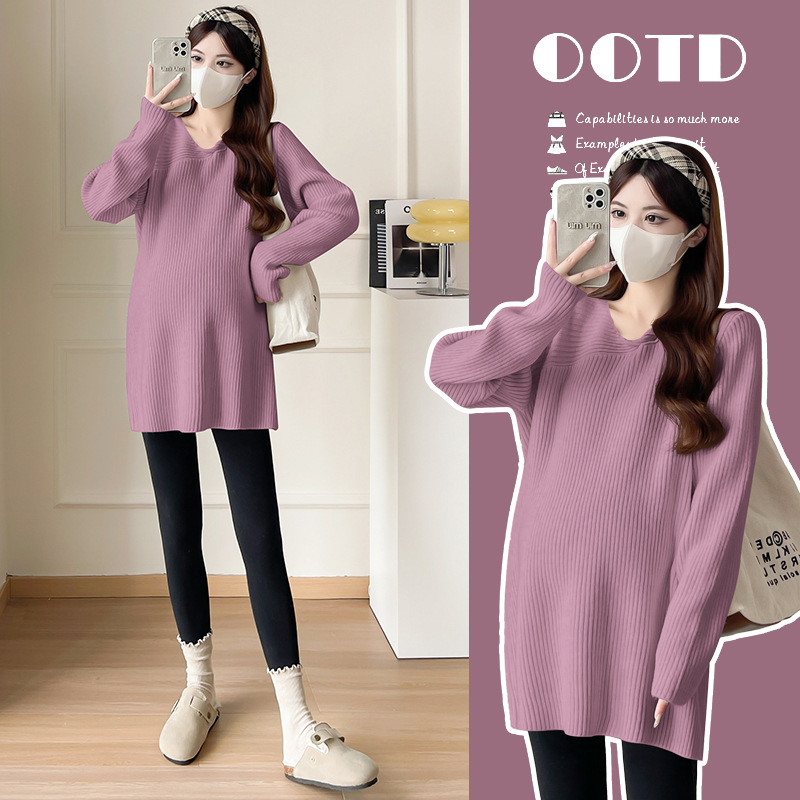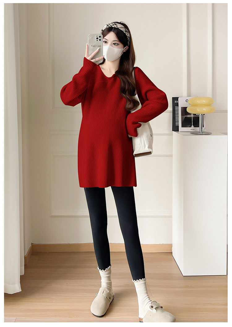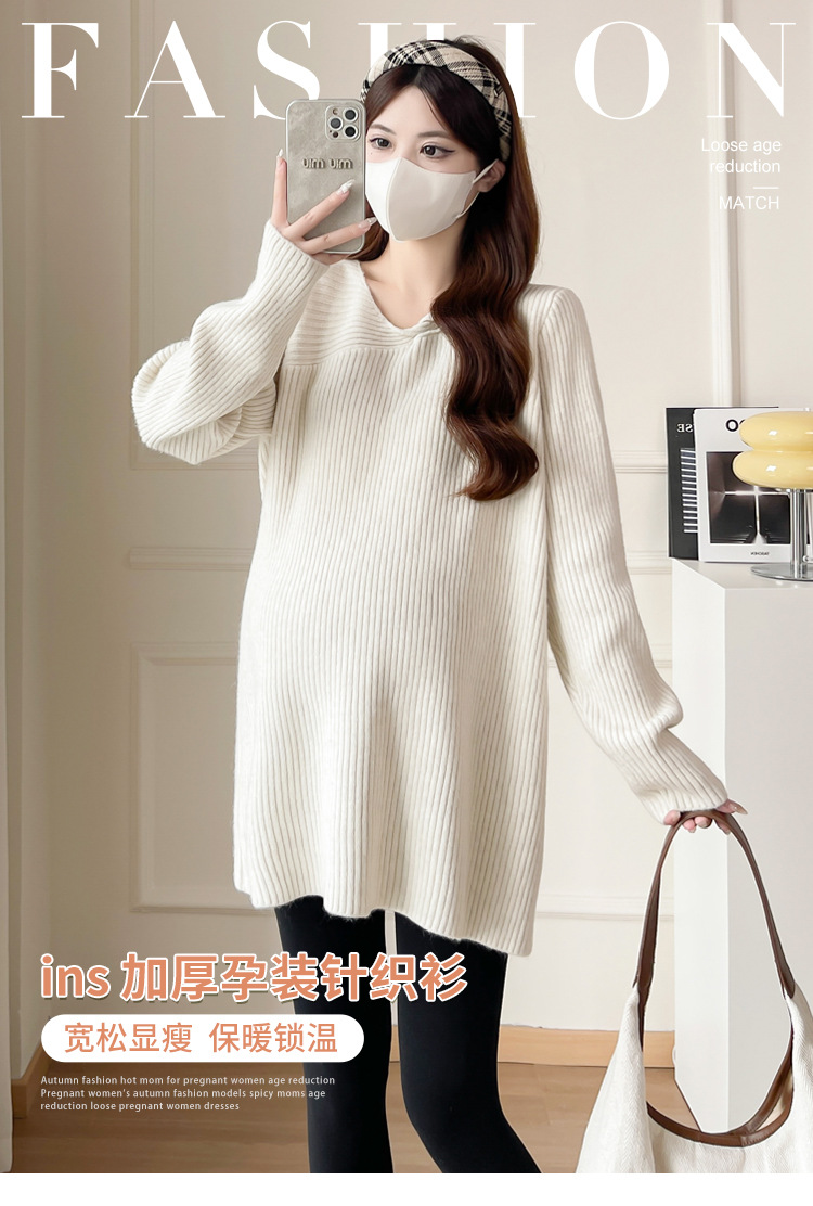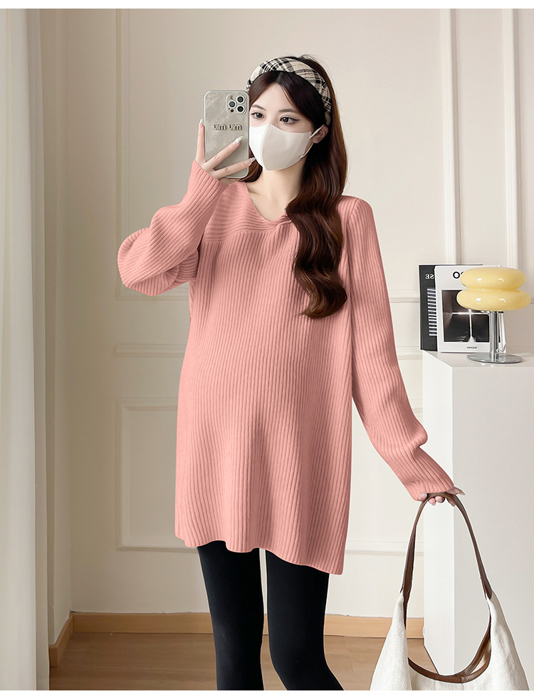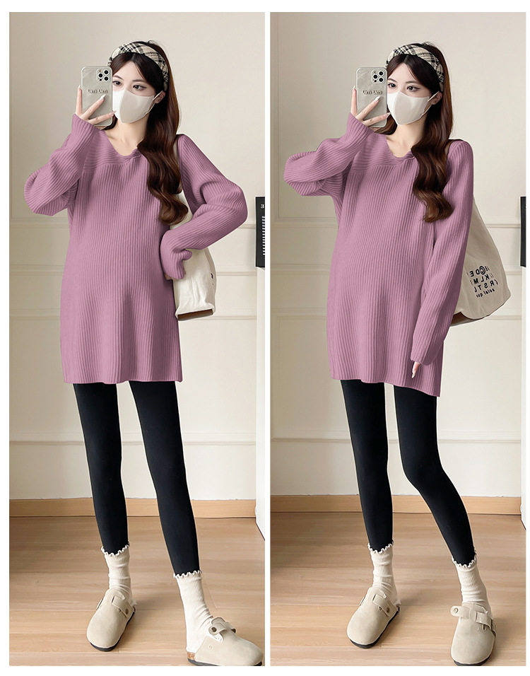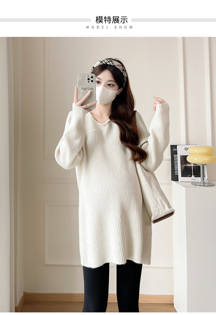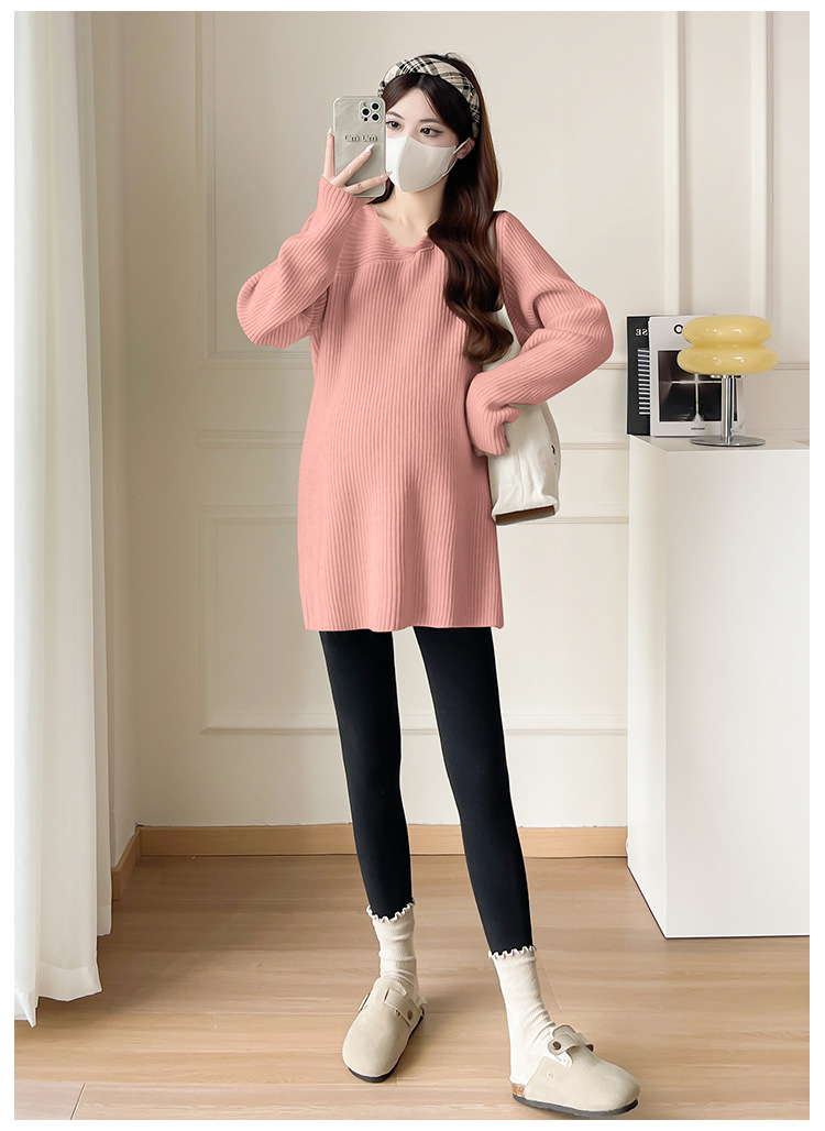 Реальный выстрел беременной женщины мягкий клейкий свитер осень-зима новый дикий свободный свитер средней и длинной одежды для беременных кормящих топ