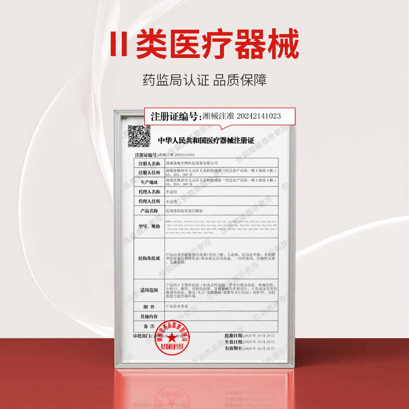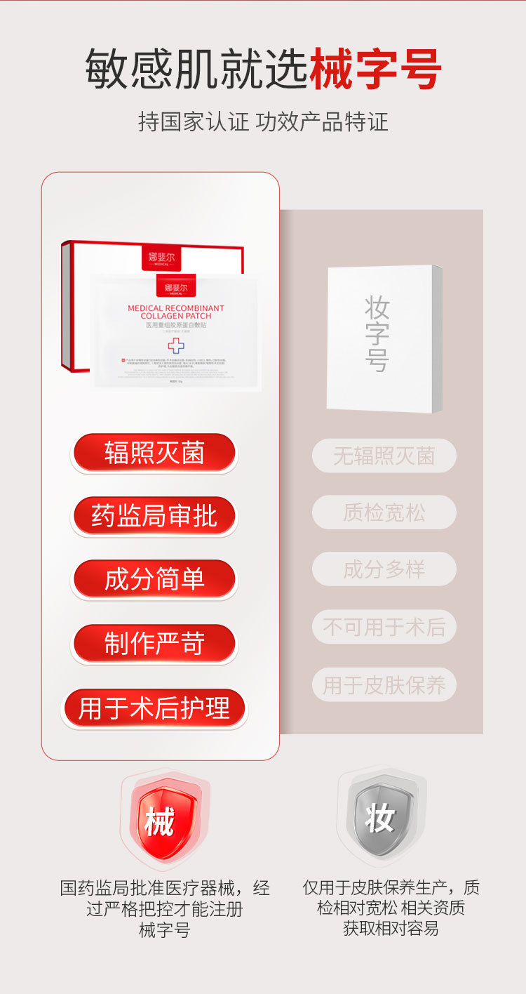Он состоит из исходного раствора коллагена, нетканого материала и изоляционной бумаги и запечатан в пакет из алюминиевой фольги.