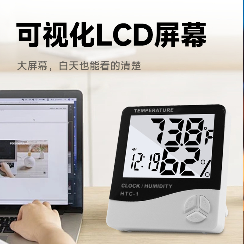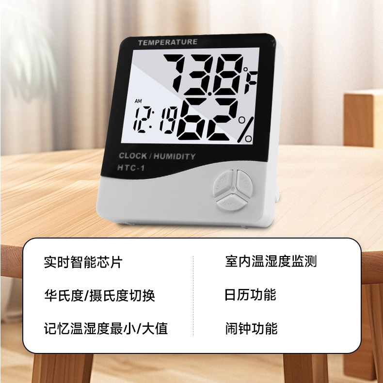 Трансграничный бытовой термометр с будильником, настольный электронный гигрометр и терморегулятор HTC-1 с большим экраном для помещений