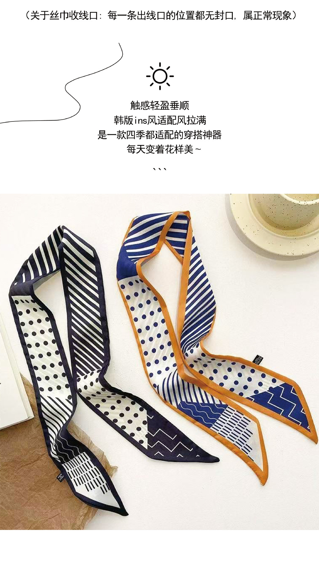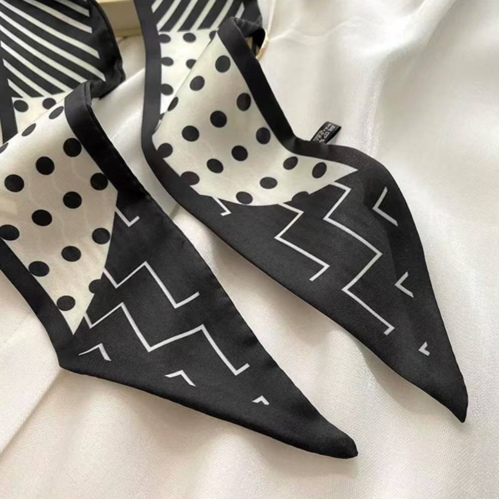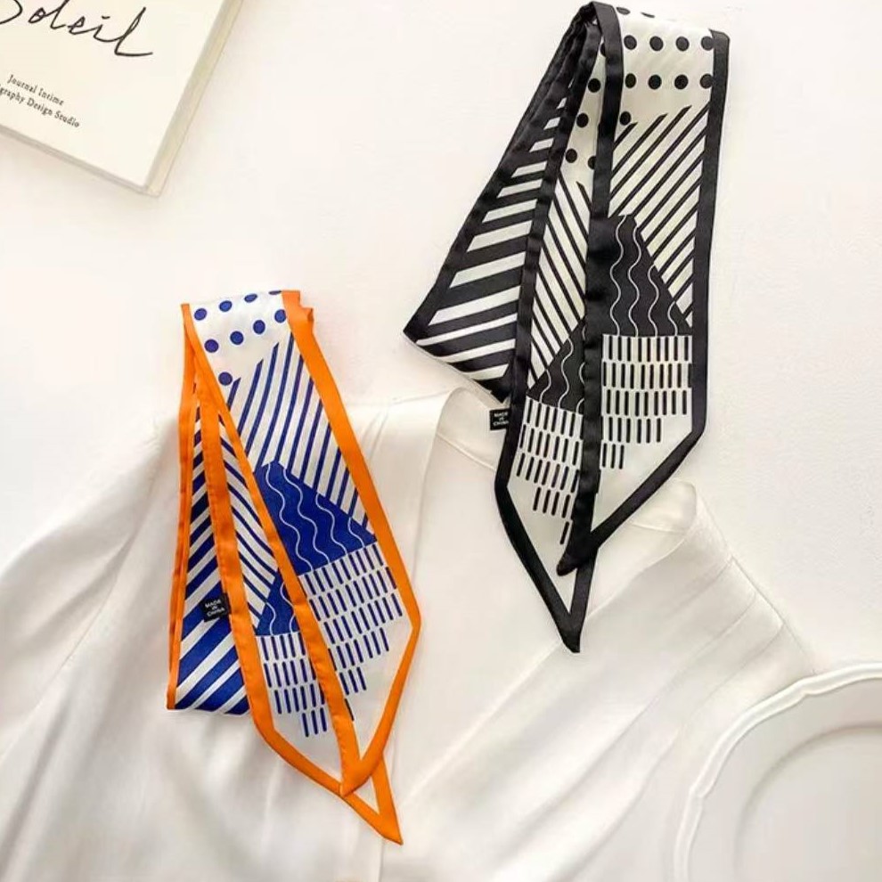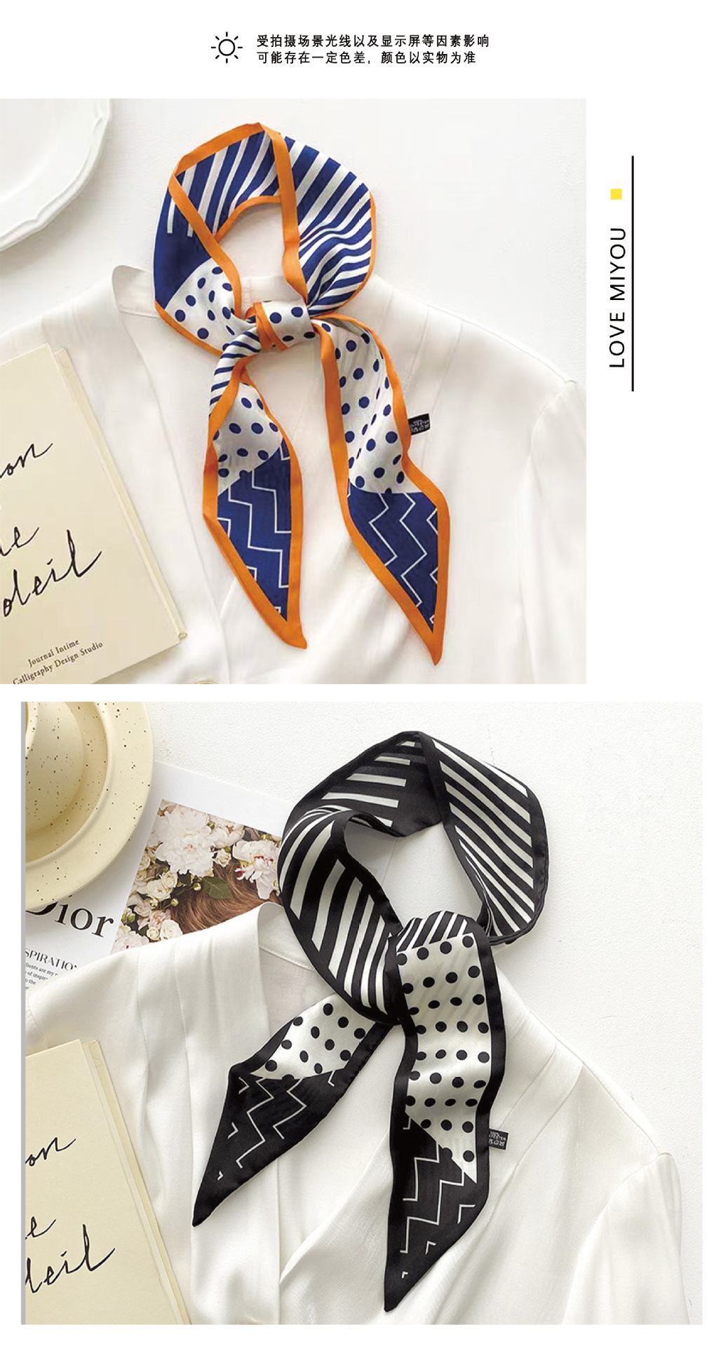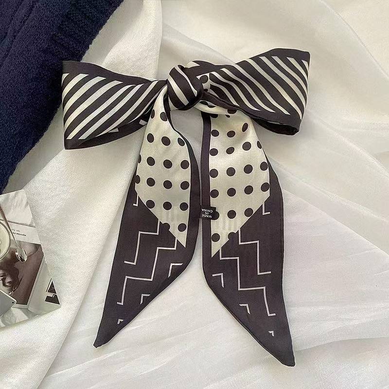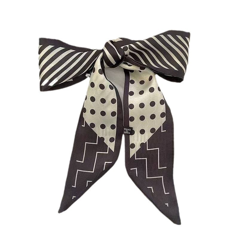 Корейский шелковый шарф в полоску в горошек в стиле ретро, новая элегантная, универсальная резинка для волос, небольшой декоративный шарф с лентой для женщин