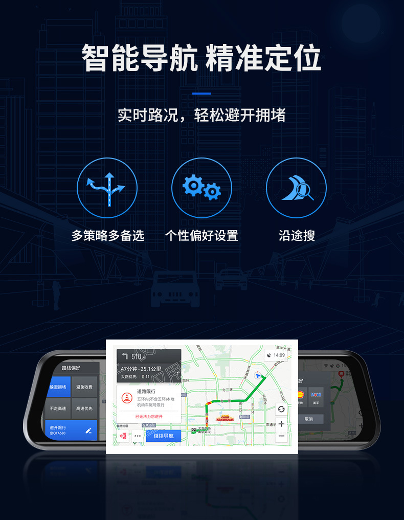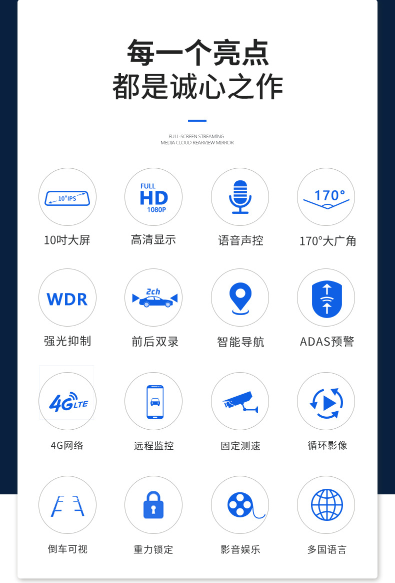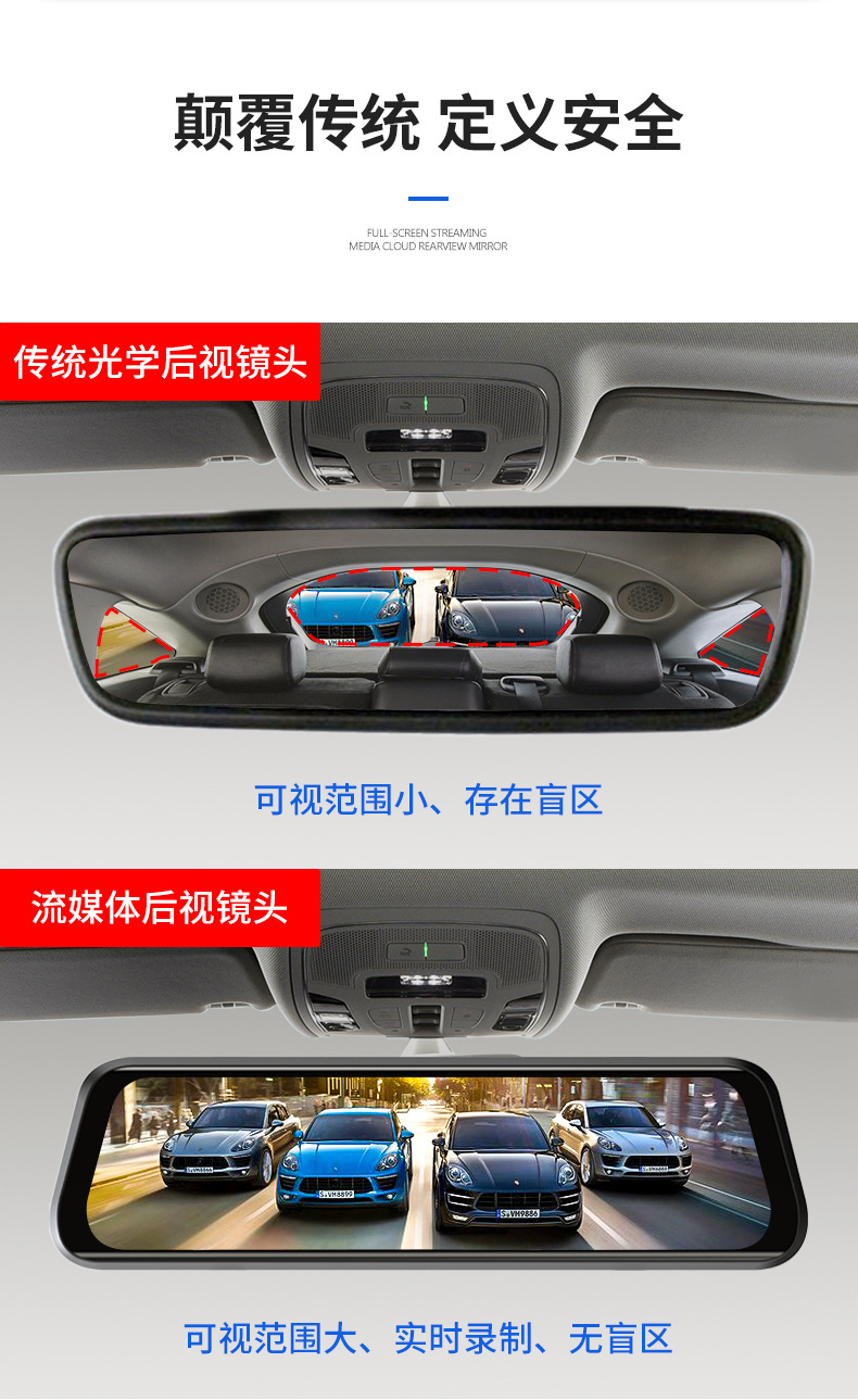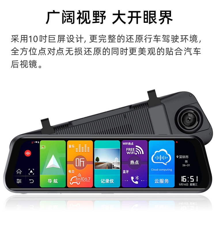 Трансграничный Android 4G сеть потокового зеркала заднего вида видеорегистратор 10-дюймовый полноэкранный 12 миллионов ночного видения высокой четкости