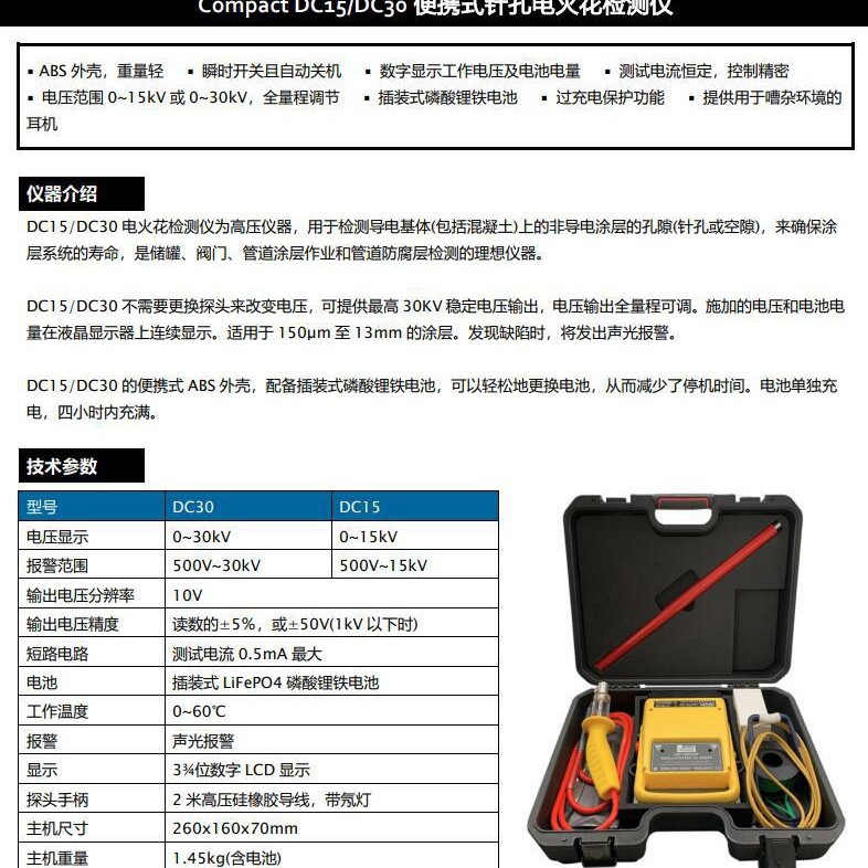 澳大利亚PCWI公司 DC15/DC30电火花检测仪为高压仪器