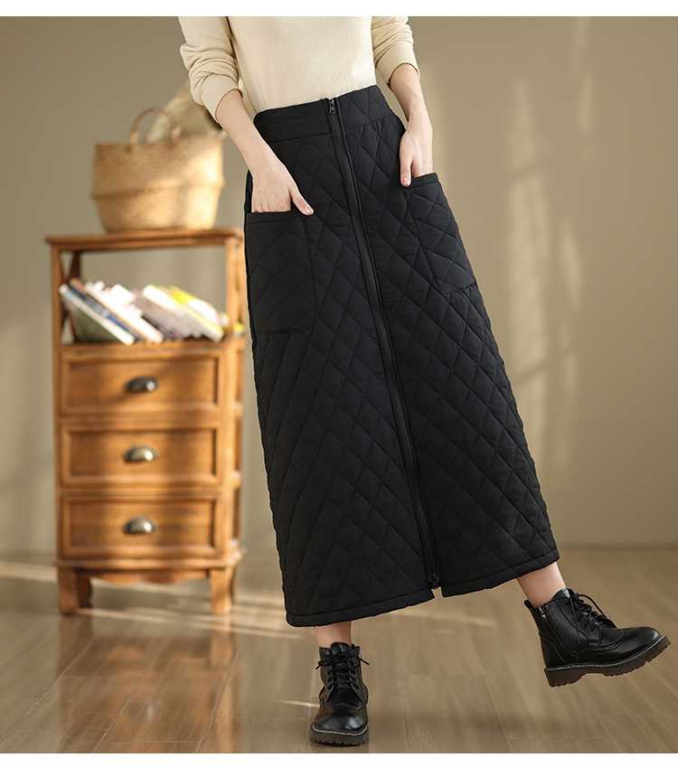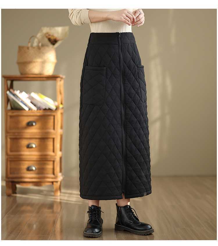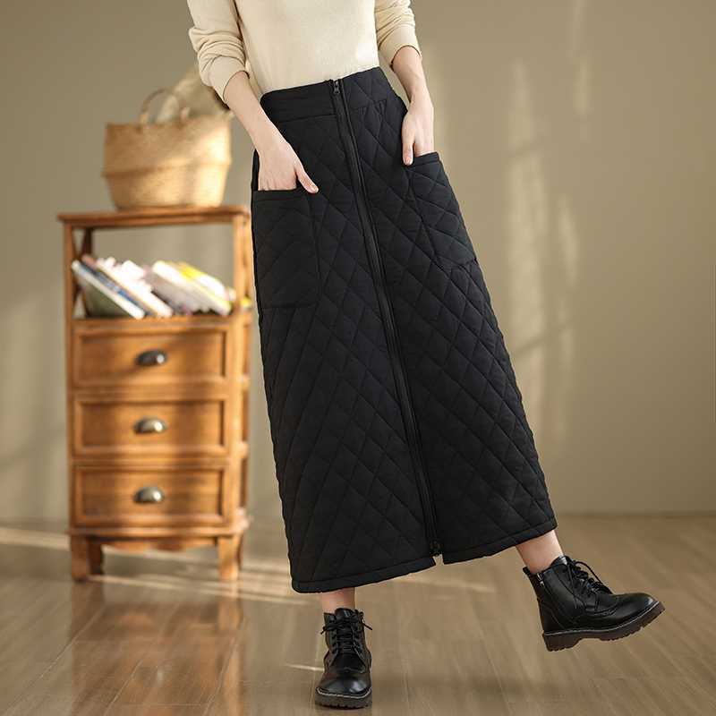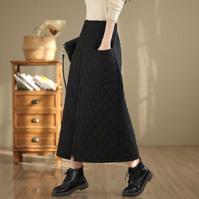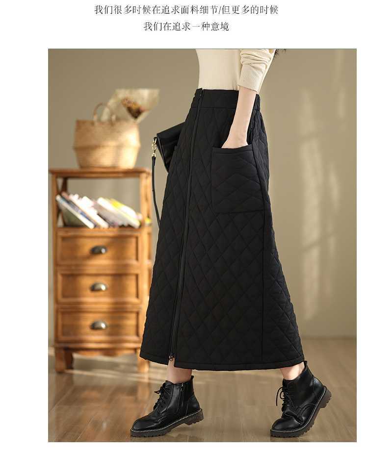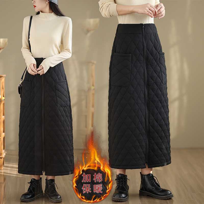 Зимняя хлопчатобумажная юбка Юбка с высокой талией и большим размером более длинное ветровое тепло пуховая юбка из хлопка слово толстая длинная юбка на молнии