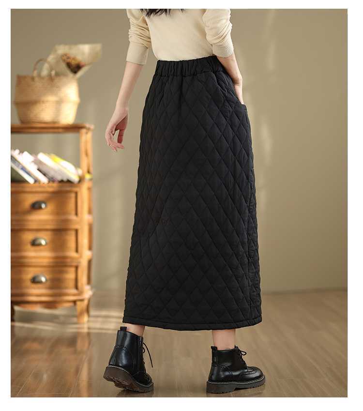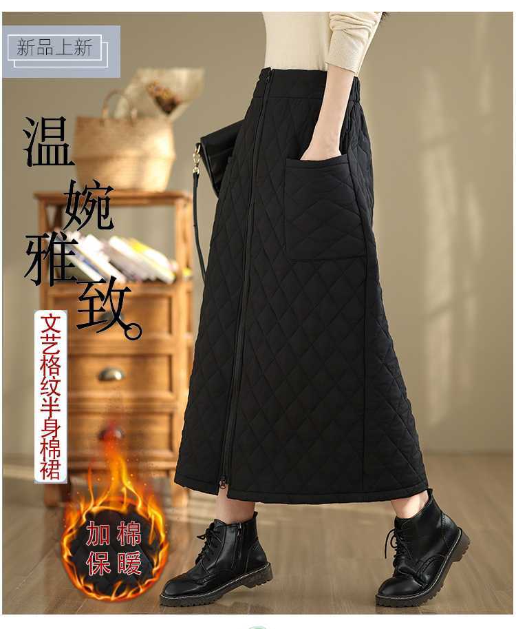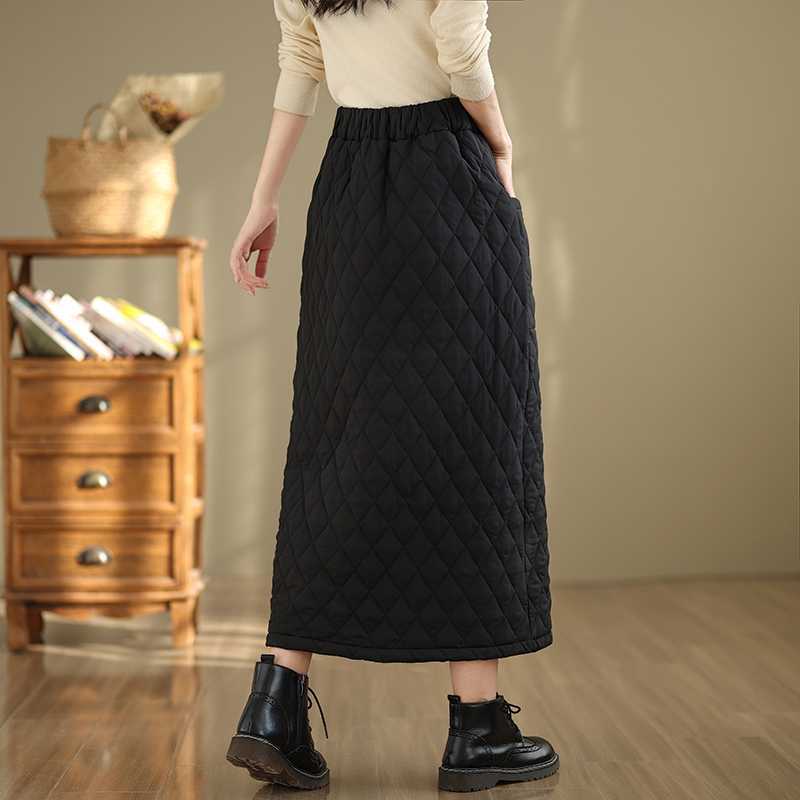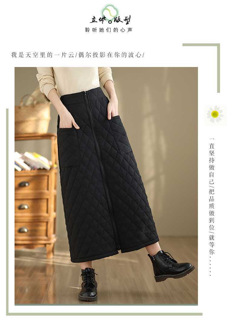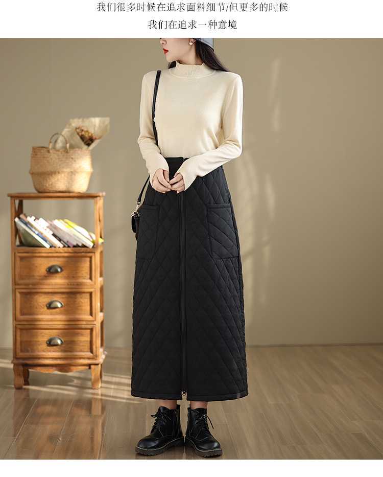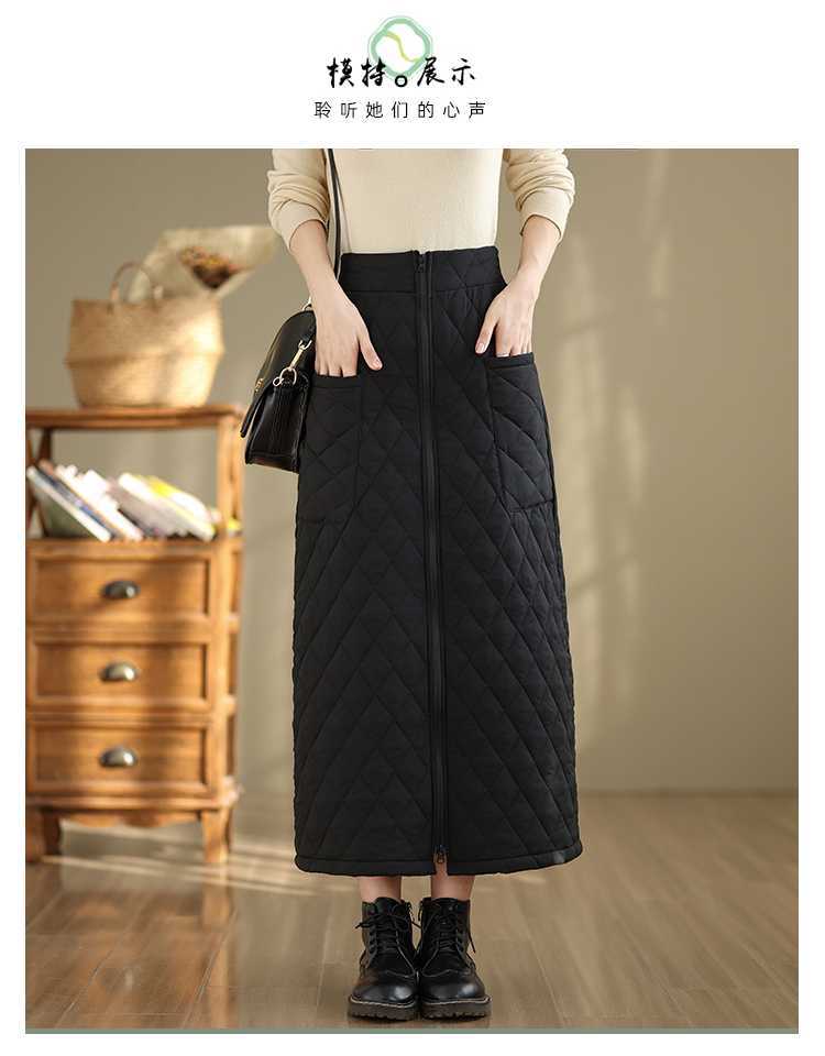 Зимняя хлопчатобумажная юбка Юбка с высокой талией и большим размером более длинное ветровое тепло пуховая юбка из хлопка слово толстая длинная юбка на молнии