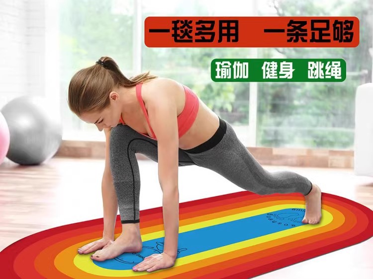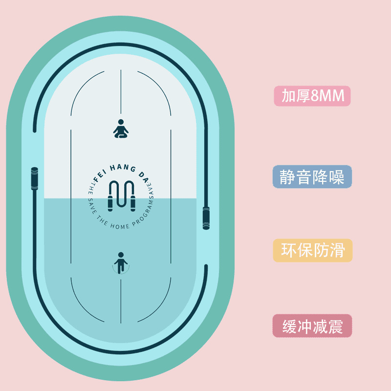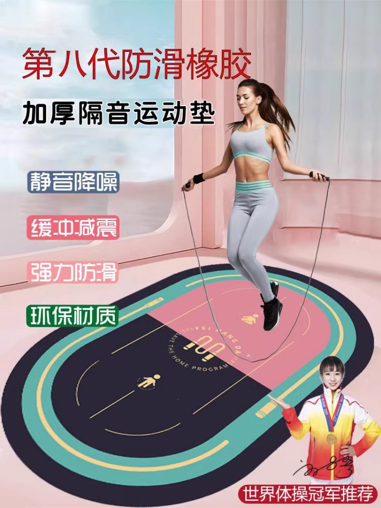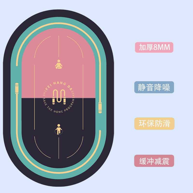 Утолщенный амортизирующий коврик со скакалкой, коврик для йоги, овальный напольный коврик для дома, бесшумный, нескользящий, для фитнеса, звукоизоляционный, для занятий спортом, профессиональный