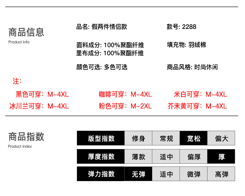 Поддельные две хлопчатобумажные куртки для мужчин и женщин
