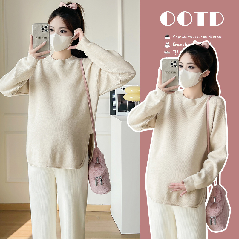 Реальный выстрел осенью и зимой дикий утолщение тепло с открытыми рукавами для беременных