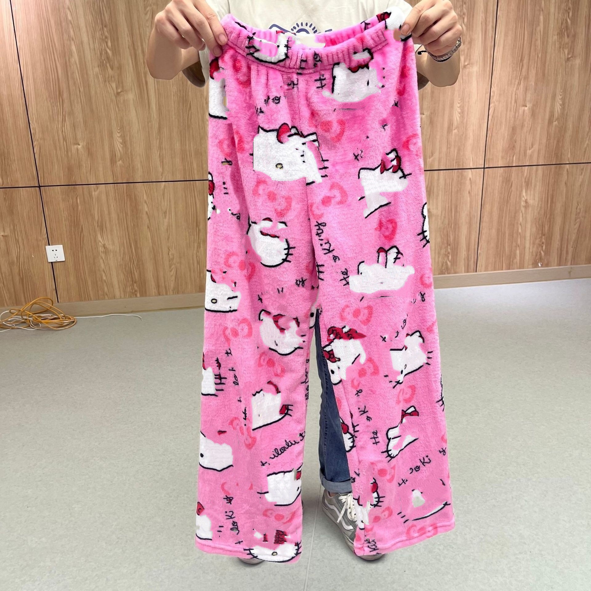 Внешняя торговля AliExpress мультяшный кот рождественские бархатные пижамы женские повседневные осенние и зимние фланелевые брюки для домашнего ношения