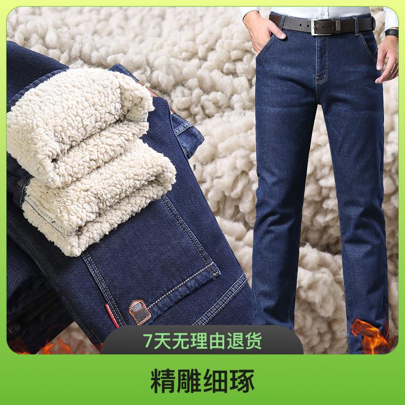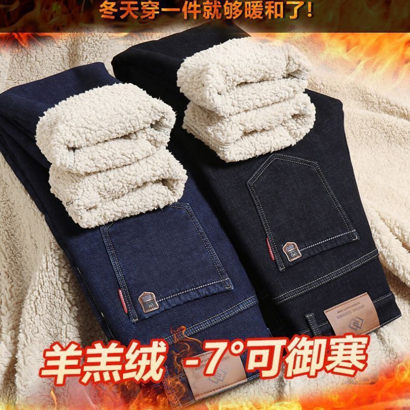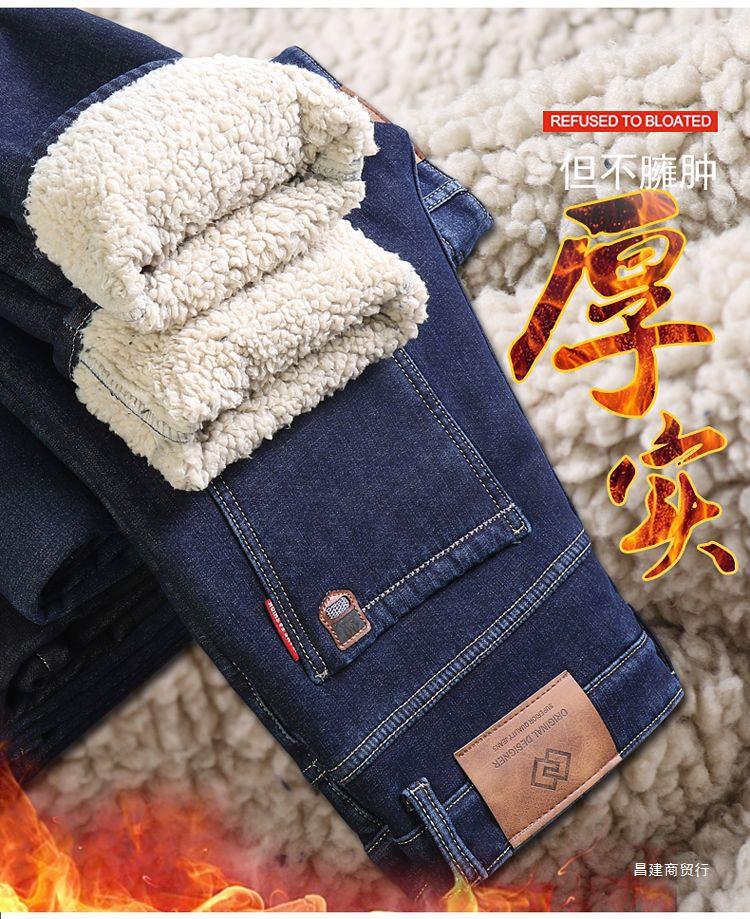 Зимние брюки мужские кашемировые пуховые джинсы мужские свободные прямые холодостойкие теплые повседневные эластичные толстые мужские брюки