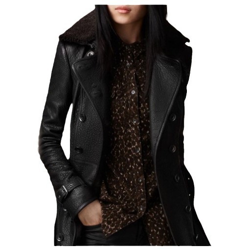 2024 Внешняя торговля Амазонка Британские женщины меховый воротник кожаный костюм средней и средней длиной мотоцикл утолщенная кожаная куртка облегая куртка