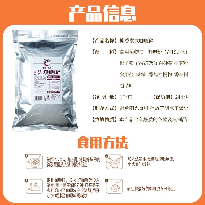Западный маленький кусочек карри с карри измельченный 1 кг Коммерческая оптовая продажа тайского кокосового карри с соусом из карри