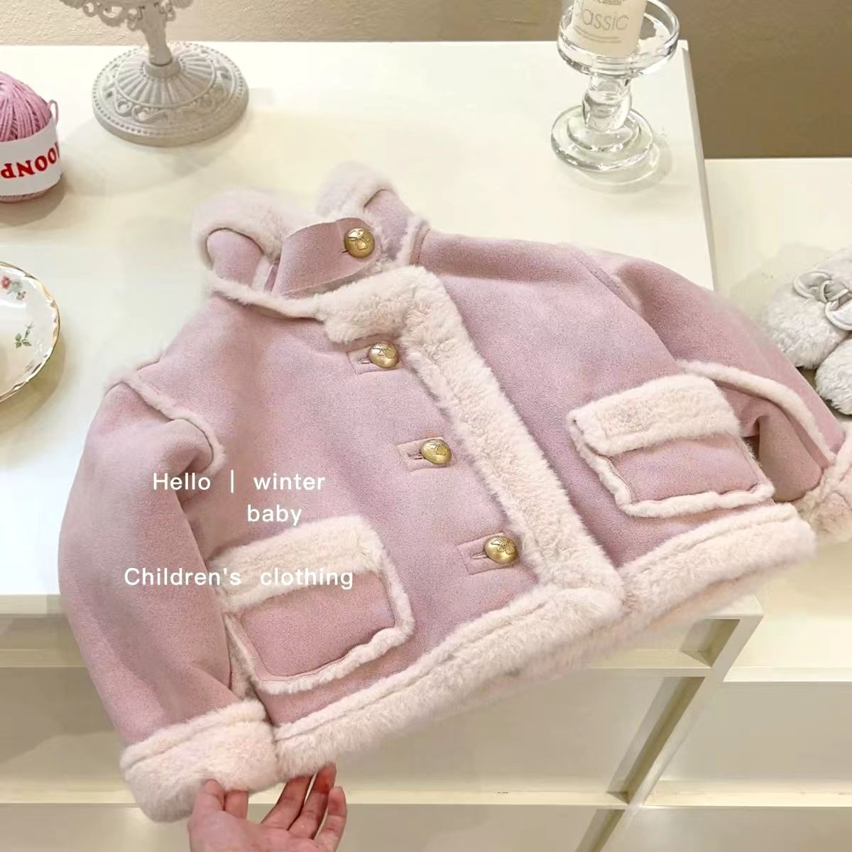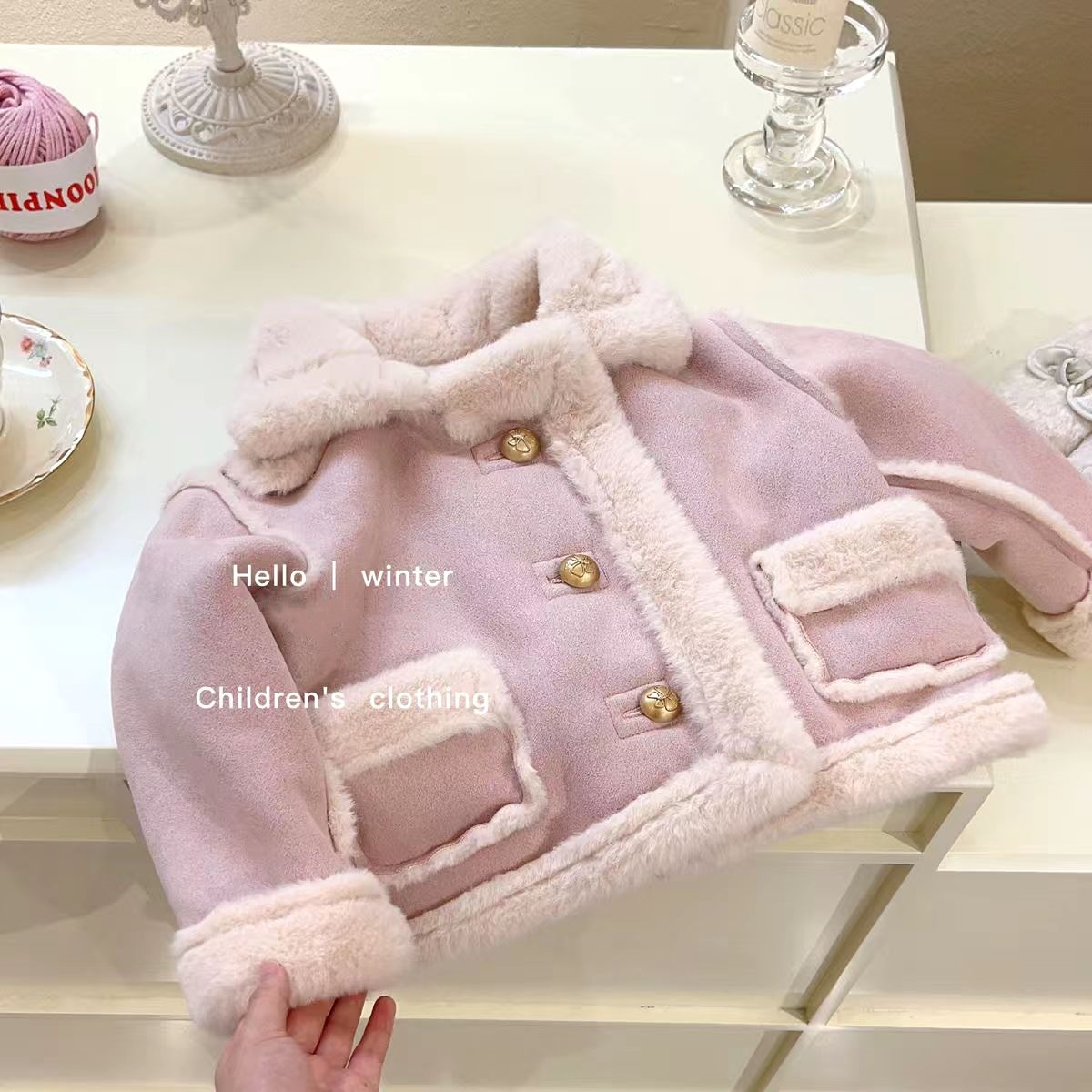 Детская верхняя одежда осень-зима 2025, новые бархатные утолщенные топы для девочек-принцесс, модная зимняя одежда для малышей