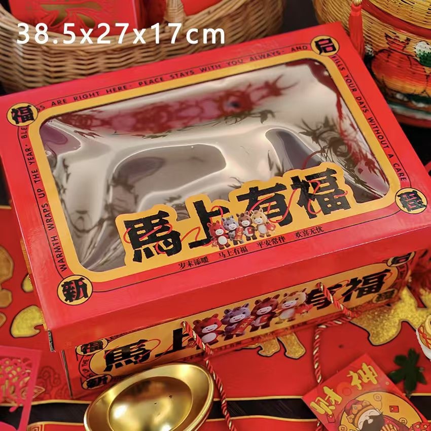 Подарочный набор к Новому году 2026 года (Год Лошади) — очень большая коробка с крышкой и окошком для орехов и закусок, элитный подарочный набор