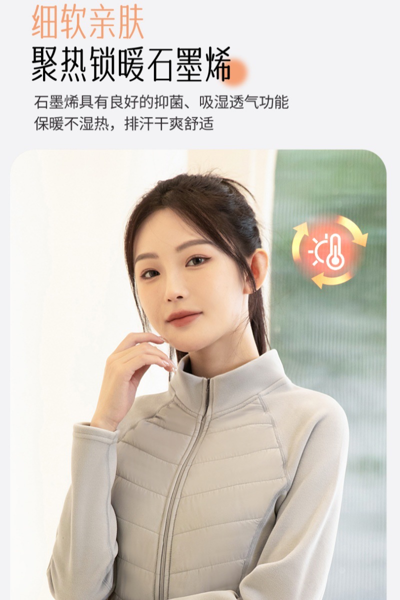 Тонкий графеновый хлопчатобумажный костюм женский короткий 24 новый тонкий йога спорт на открытом воздухе теплый фитнес воротник