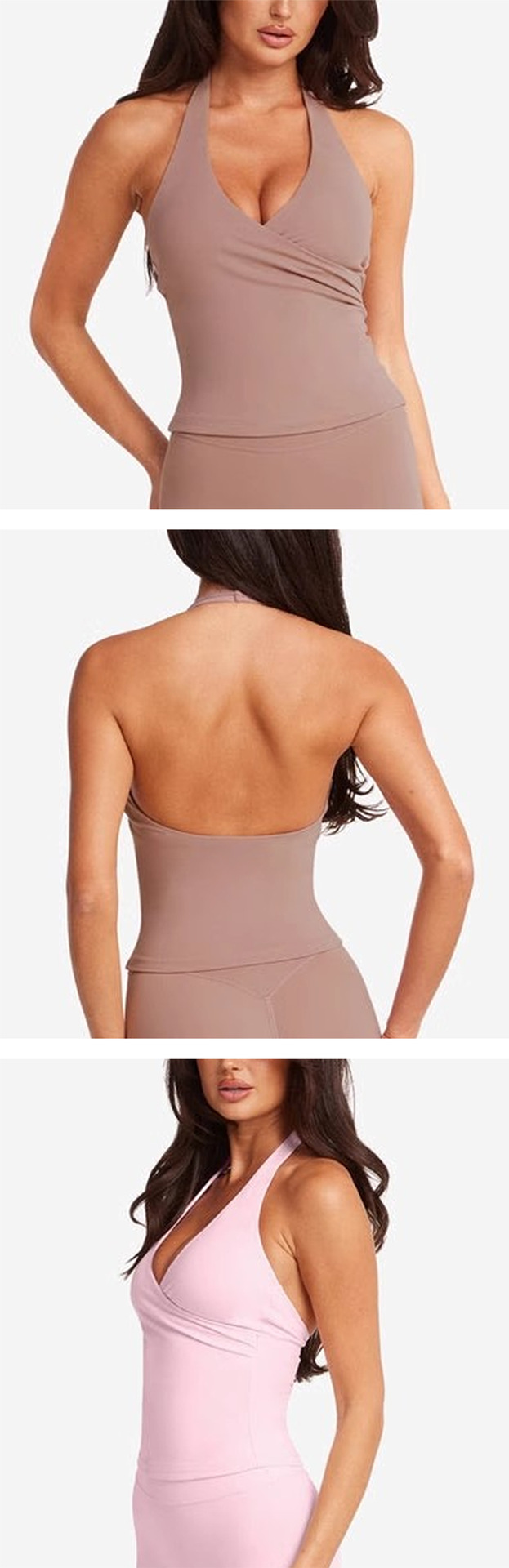 Женский жилет для йоги с трансграничным V-образным вырезом и фиксированной нагрудной подушечкой, быстросохнущая спортивная верхняя одежда для фитнеса без рукавов, красивая спина