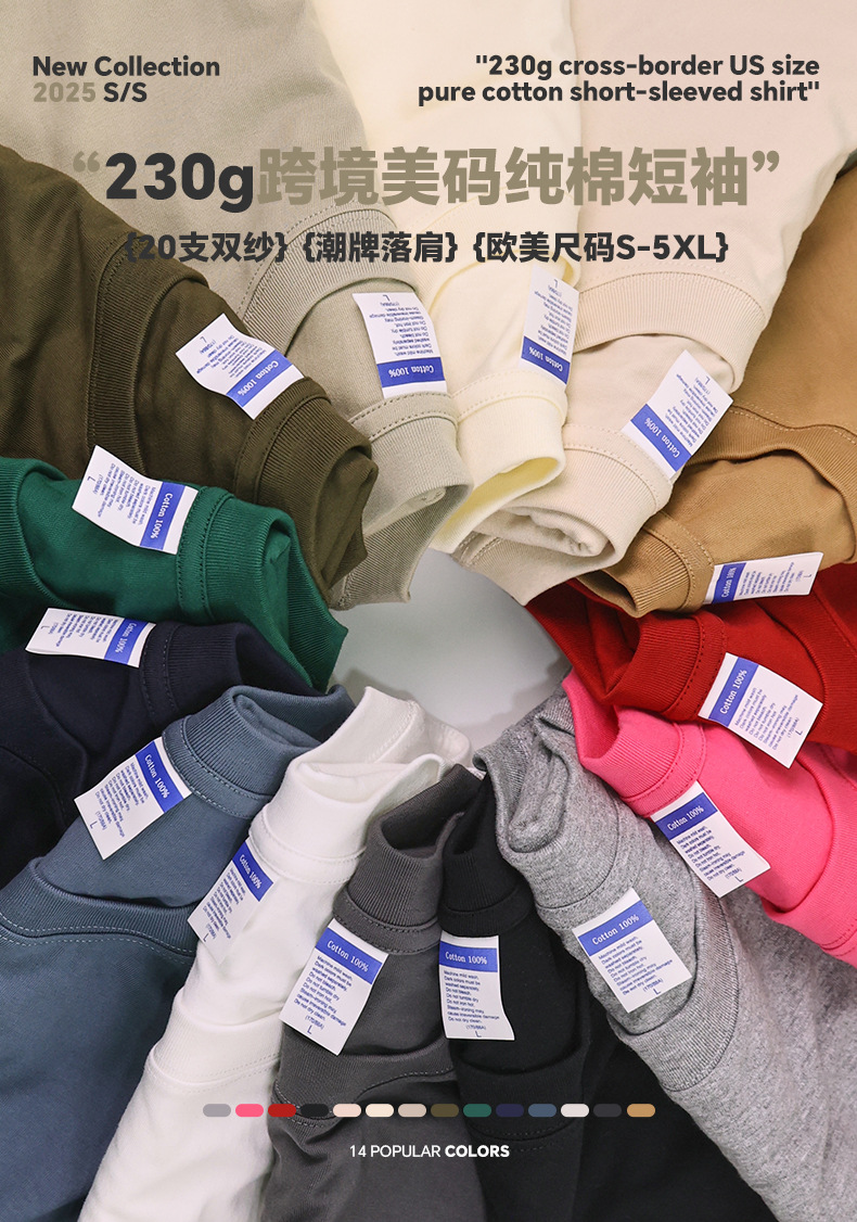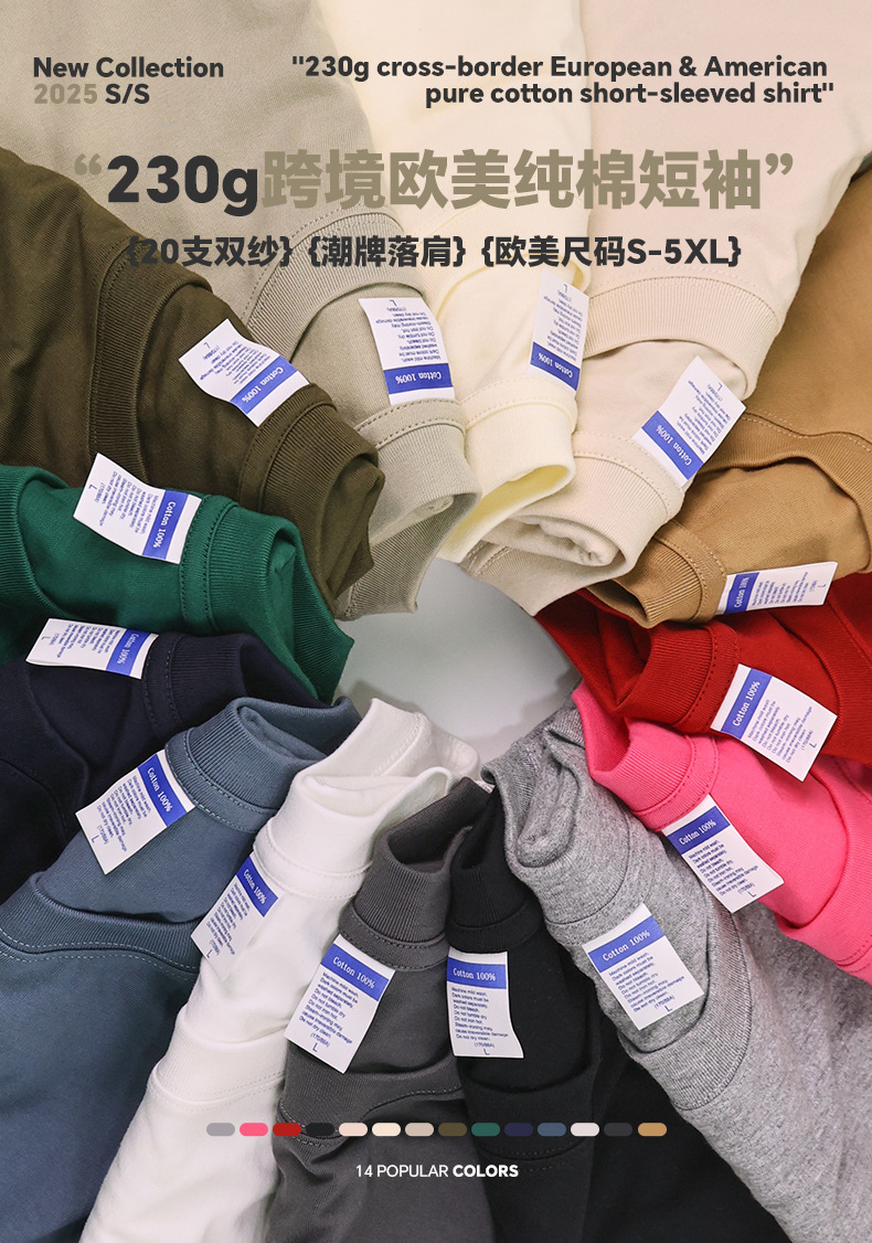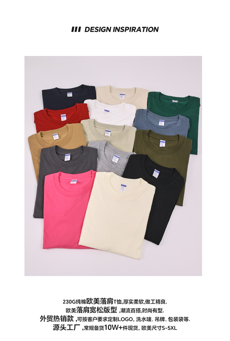 Мужская футболка с короткими рукавами из чистого хлопка, 230 г, с заниженными плечами, в европейском и американском размерах для международной торговли.