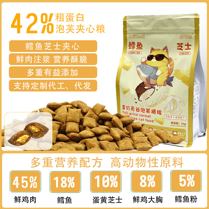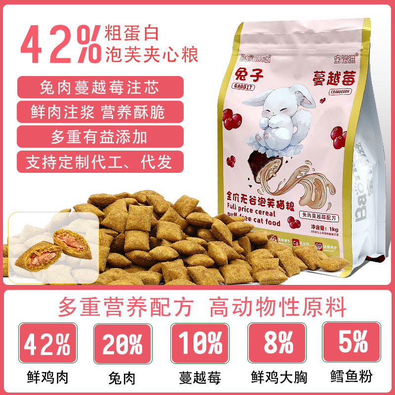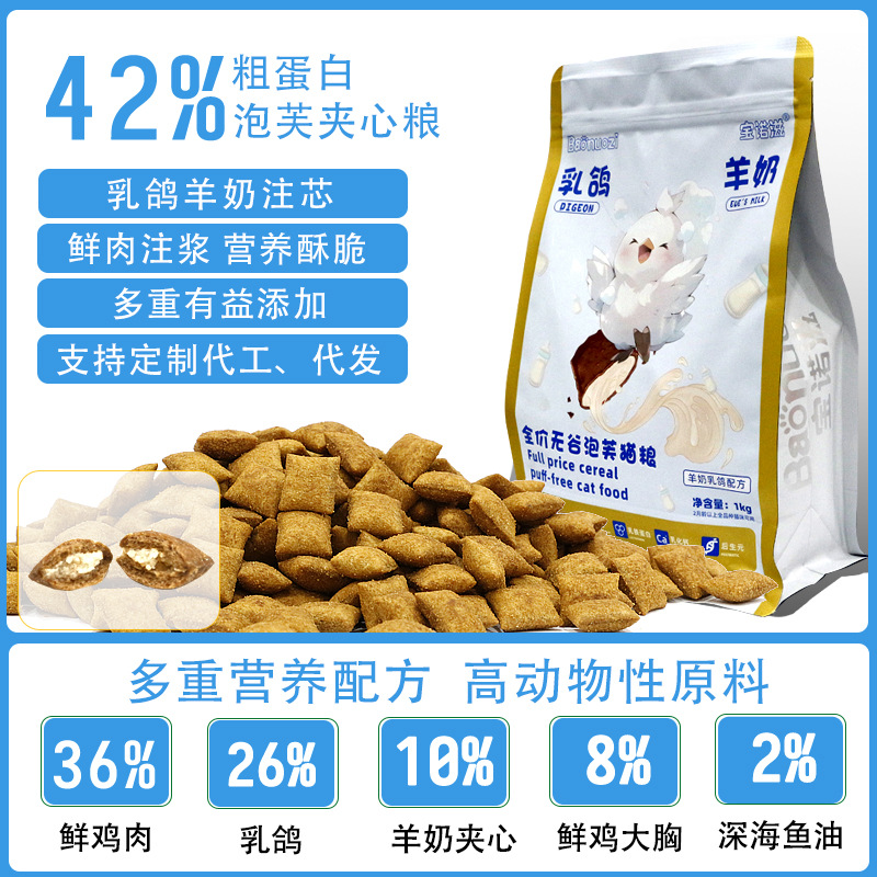 Корм для кошек с начинкой из слоеного теста, полнорационный, со свежим мясом, для набора веса, для котят и взрослых кошек, оптовая продажа корма для кошек с начинкой из слоеного теста.