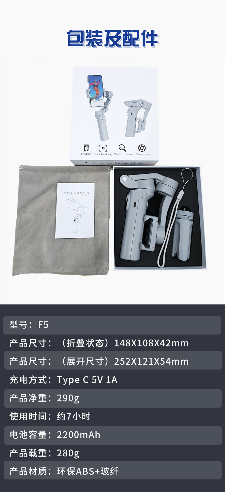 [Стабилизатор мобильного телефона F5] Серо-английская версия