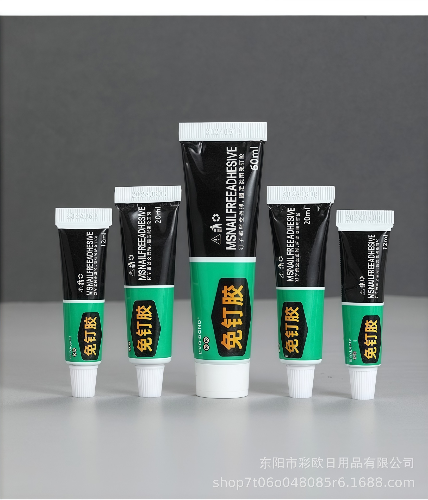 Клей без ногтей 6 мл (пробный размер); Клей без ногтей 12 мл (маленький размер для домашнего использования); Клей без ногтей 20 мл (для домашней версии большого размера); Клей без ногтей 60мл (коммерческая версия)